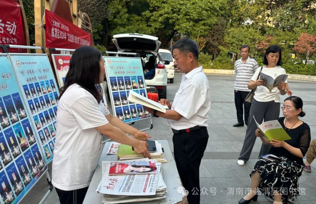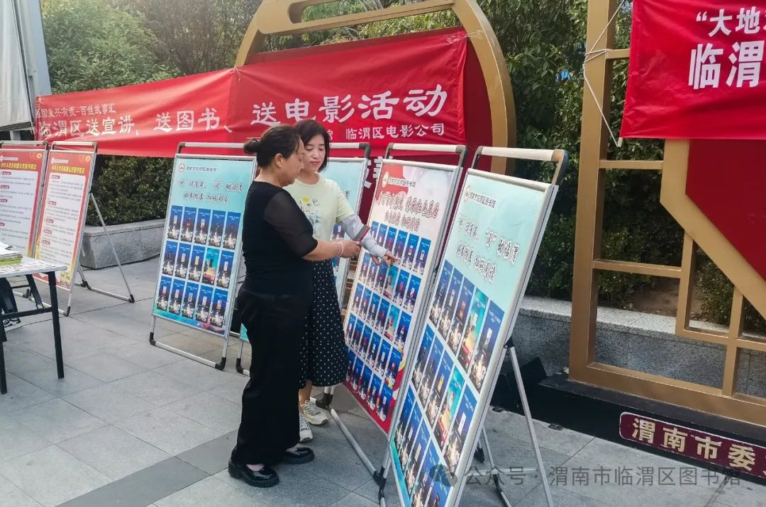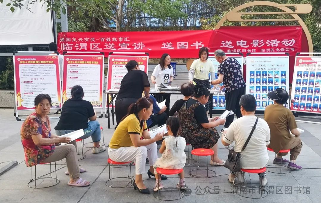 为推动我区陕西省公共文化服务高质量发展示范区创建工作高效率开展,有效融合区内公共文化资源,为老百姓提供优质的文化大餐,满足群众多样化精神文化需求。6月18日,临渭区图书馆联合区电影公司、区文化馆在惠丰广场(朝阳大街与解放路十字)共同开展了“强国复兴有我、百姓故事汇——送宣讲、送图书、送电影”流动服务活动。