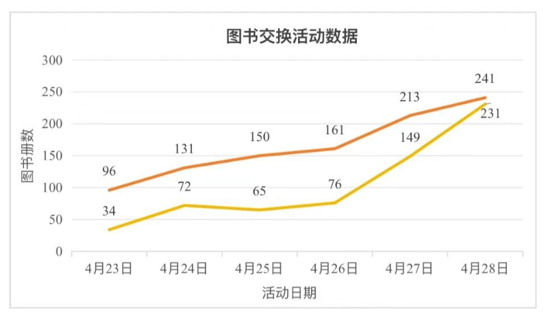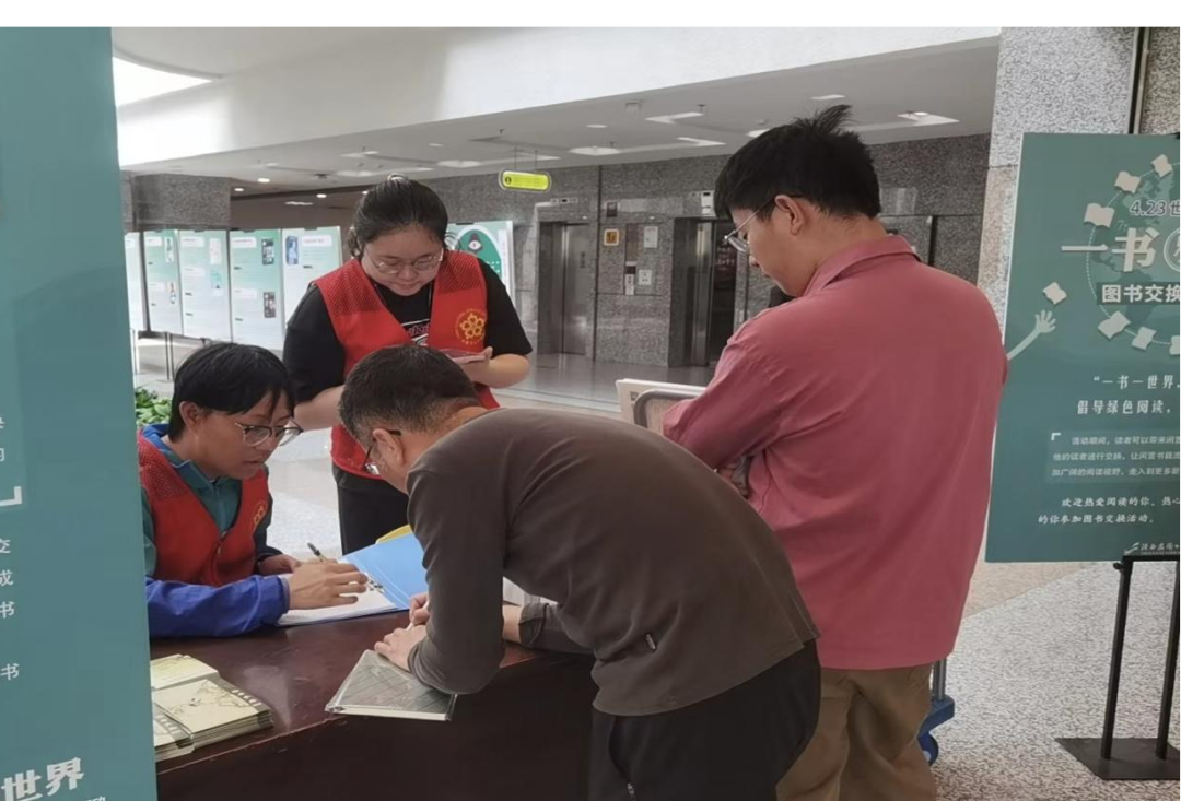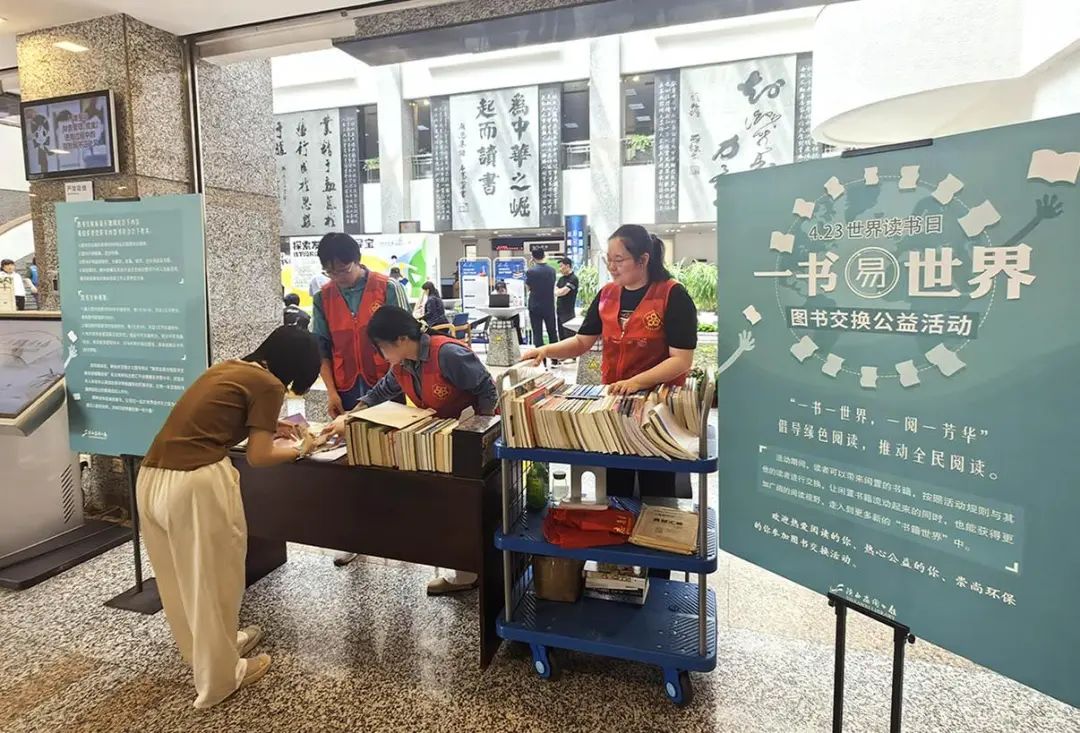 在2024年4月22日至28日陕西省图书馆“4.23 世界读书日”暨服务宣传周期间,陕图兰台志愿者服务站成功举办“一书易世界”图书交换活动。活动总参与活动读者共计157人次,换入图书册数共计928本(码洋34000余元),换出图书册数共计627本,换入图书总积分27356分。