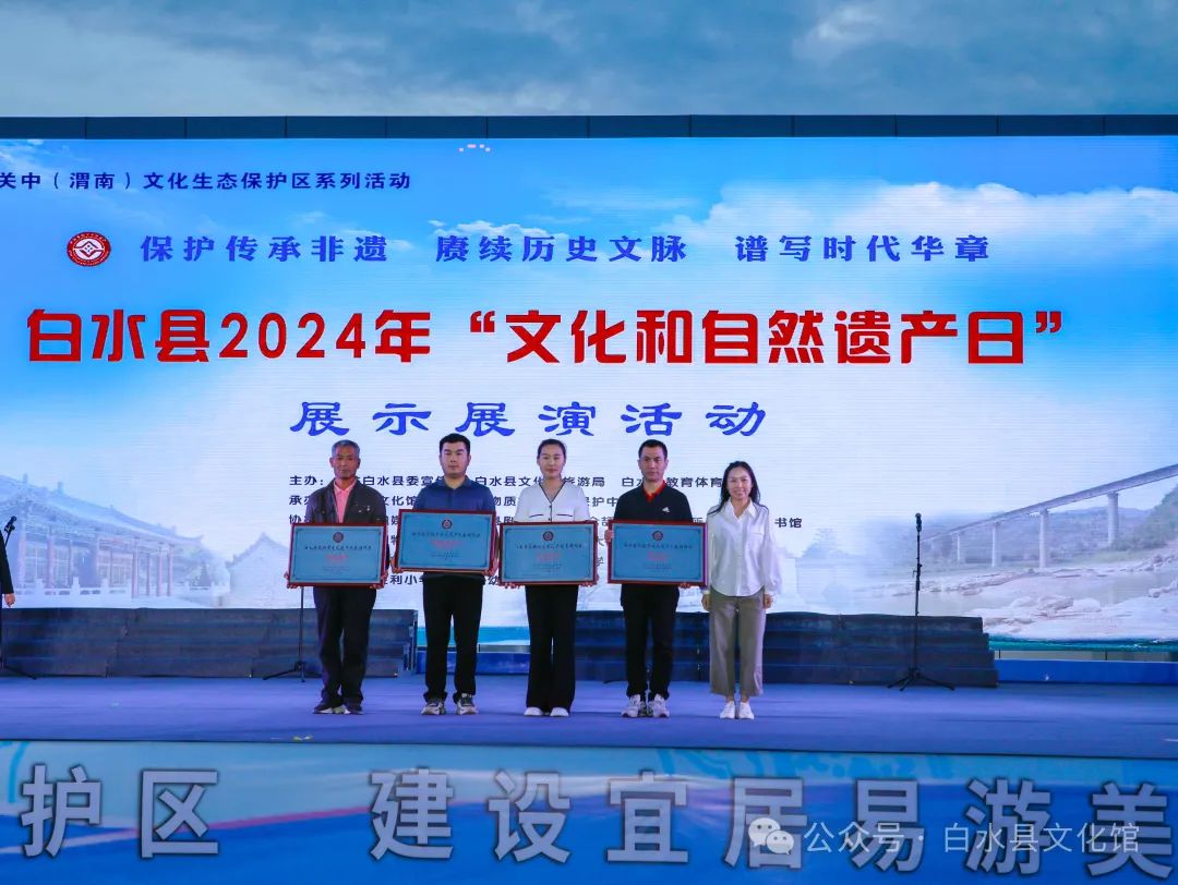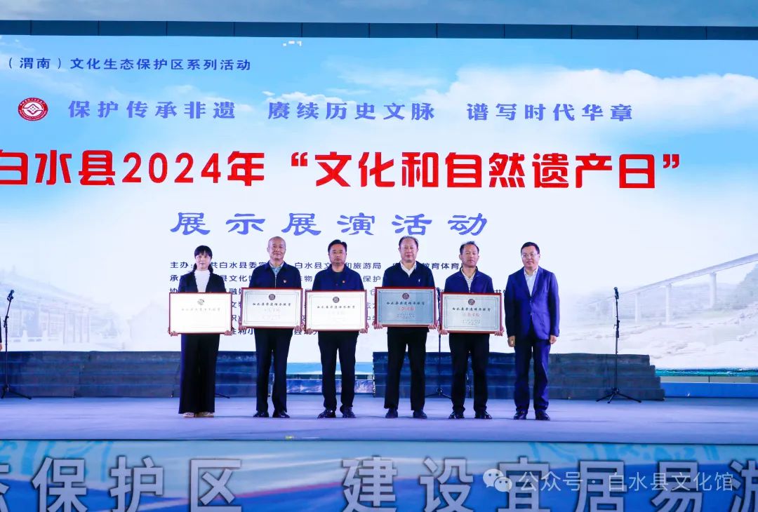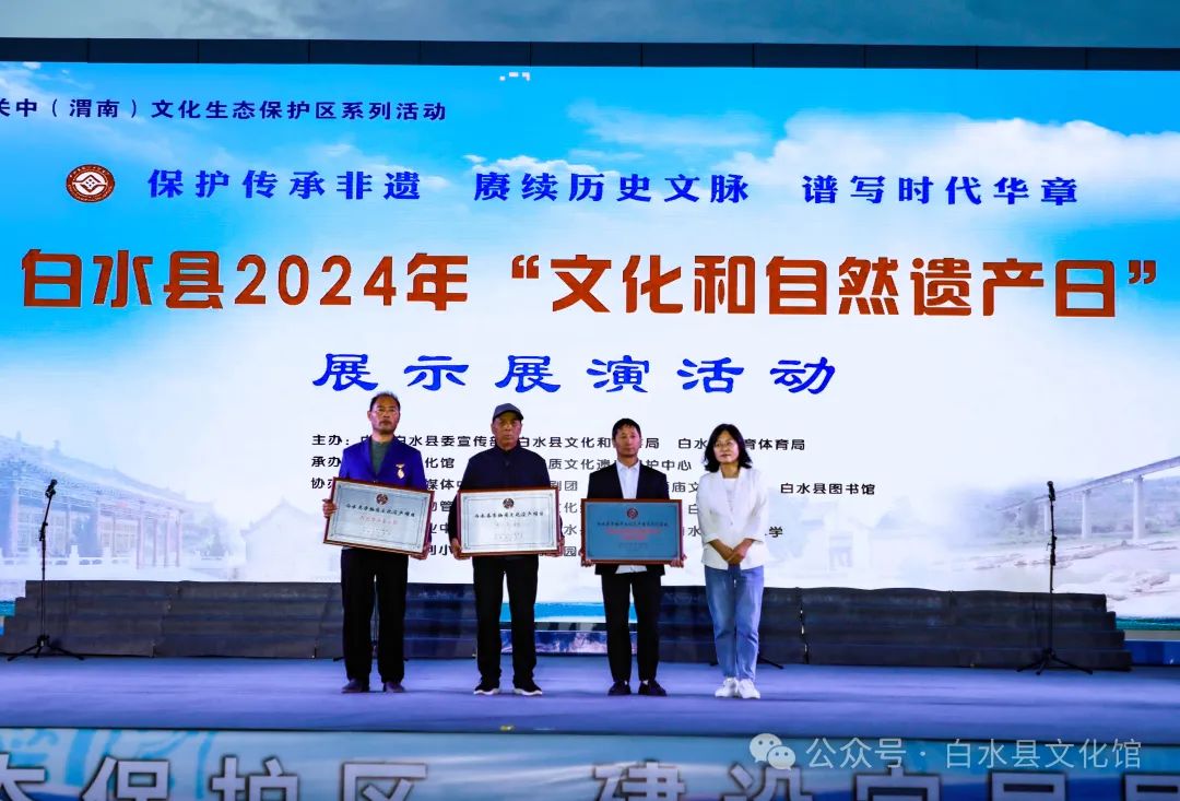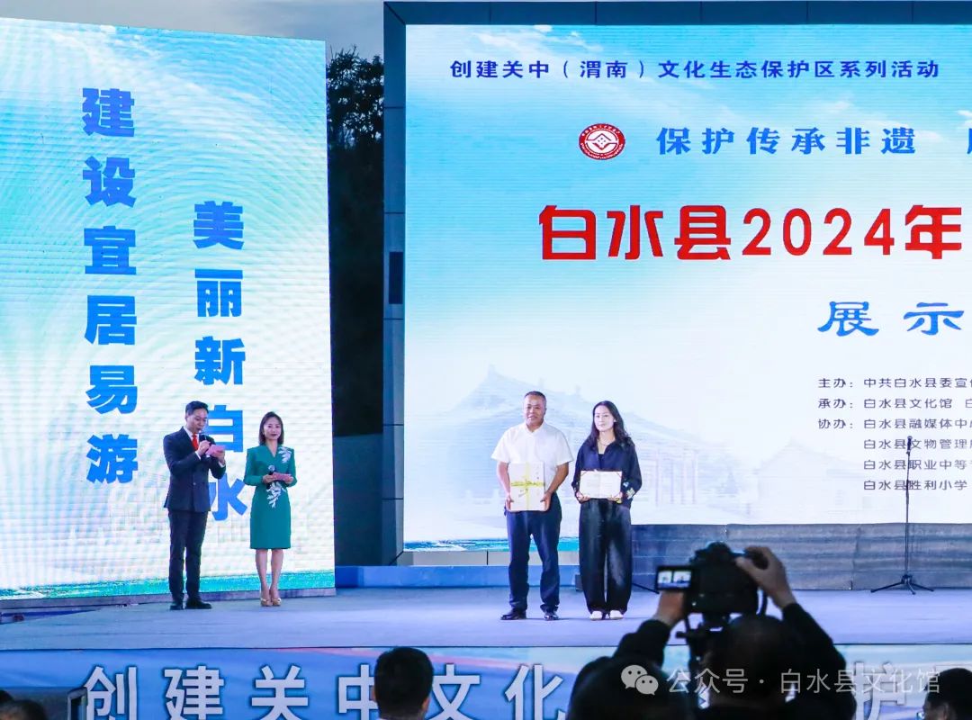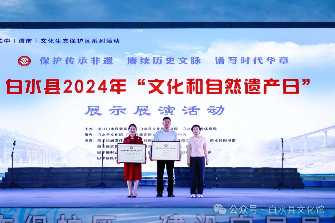 政协副主席张晓文、文化和旅游局党组书记、局长张梅梅颁发白水县第五批非物质文化遗产代表性项目牌