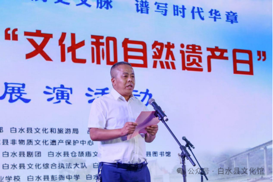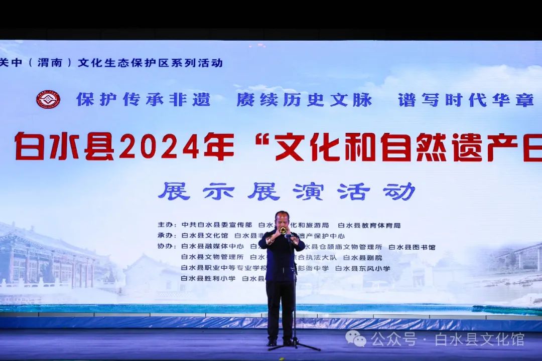 县政府副县长姚明亮宣布2024年陕西省群众文化艺术节渭南白水分会场暨白水县“文化和自然遗产日”展示展演活动启动。