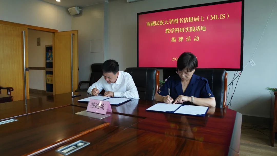 5月28日,西藏民族大学图书情报硕士教学科研基地签约挂牌仪式在陕西省图书馆长安路馆区举行。西藏民族大学管理学院党委书记、副院长胡艳,西藏民族大学图书馆馆长、研究馆员、研究生导师孔繁秀,陕西省图书馆党委书记、馆长周云岳以及双方研究生导师代表、中层代表和学生代表等参加活动。仪式由陕西省图书馆副馆长李博阳主持。 周云岳在致辞中代表省图书馆向出席本次仪式的各位领导、老师和同学们表示热烈的欢迎,并介绍了省馆的历史沿革与发展历程。近年来,省图书馆依托“一馆三区”服务格局,面向广大读者打造了“陕图讲坛”“陕图读书会”“蒲公英绘本故事屋”等一批叫得响、知名度高、深受群众喜爱的阅读活动品牌,形成了各有特色、主题突出、辐射全省的服务格局。他表示,省图书馆与西藏民族大学合作共建图书情报硕士教学科研实践基地,将有利于进一步发挥双方各自资源与优势,推动双方实现资源整合与优势互补,为推进高校图情专业研究和人才培养,推动公共图书馆事业高质量发展搭建坚实桥梁。 孔繁秀对陕西省图书馆的大力支持表示衷心地感谢,详细介绍了西藏民族大学悠久的办学历史、成绩卓著的办学成果和图书情报专业硕士点建设的基本情况。作为2022年获批西藏高校唯一的图书情报专业硕士学位授权点,她对学校图书情报专业硕士的首次招生情况、人才培养方案、就业方向、师资情况作了说明。希望通过教学科研实践基地的建设,加强与省图书馆的密切合作,共同构建集人才培养、科学研究、成果转化、社会服务、文化传播等多元一体、互惠互赢的资源共享机制和合作平台,培养更多优秀的图书情报专业人才。 揭牌仪式上,周云岳与胡艳共同为图书情报硕士教学科研实践基地共同揭牌,并与孔繁秀签署了教学科研实践基地合作协议书。西藏民族大学图书馆向省图书馆捐赠了《明实录藏族史料类编》《清实录藏族史料类编》,合计十一集。与会人员还围绕数字图书馆建设、文旅融合发展、图书馆阅读推广等主题开展了研讨交流。 此次揭牌仪式的举行,架起了双方深层合作与交流的桥梁,也是双方合作的一个开端。未来,双方将按照基地建设协议,全力协调各方资源为学生搭建实践成长平台,努力创新协同育人模式,拓展合作领域,实现互惠互利、共同发展,为图书馆事业的高质量发展注入强劲动力。 活动结束后,西藏民族大学相关领导、师生代表一行还参观了省图书馆长安路馆区文献特藏中心、视障阅览区、古籍保护中心、“三立堂”城市书房等特色服务功能区,对图书馆运营开放等工作进行了深入了解。