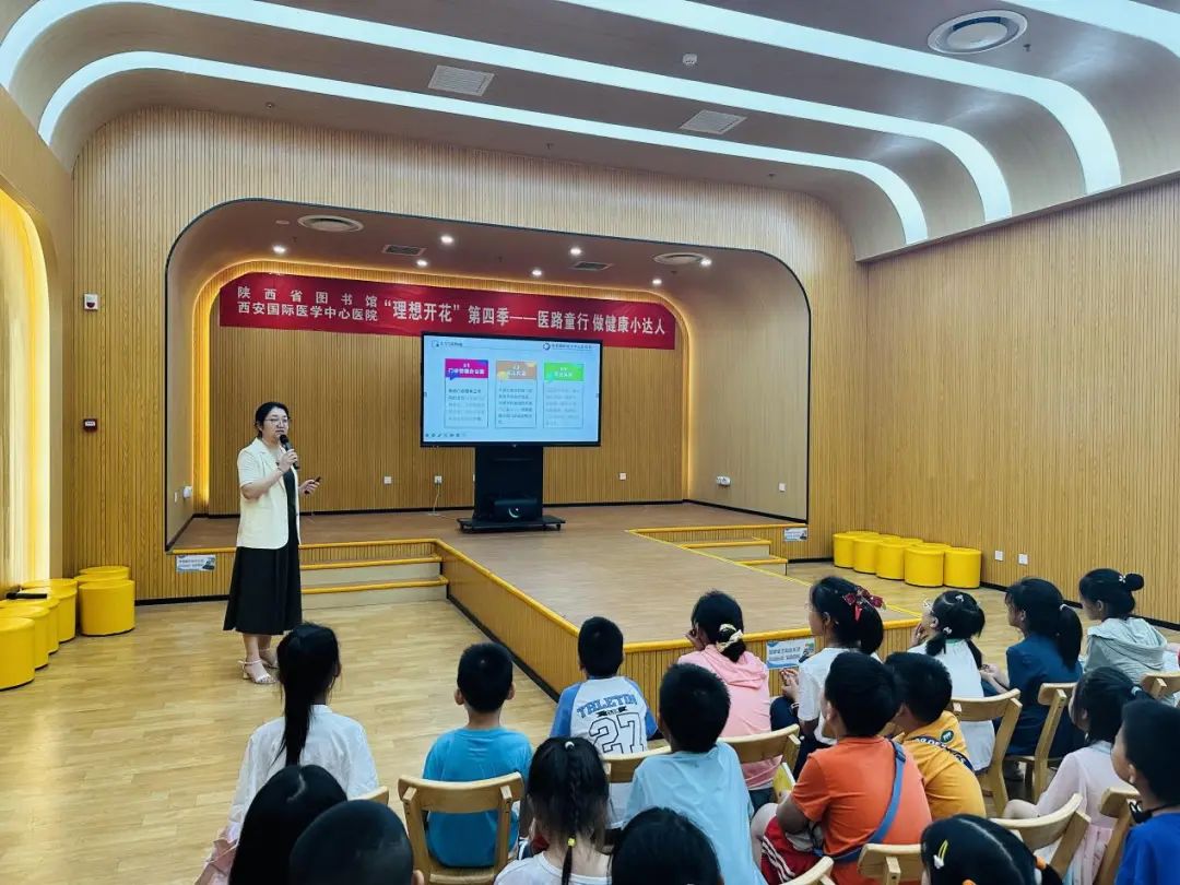 6月22日,小读者们期待的“理想开花”儿童创新教育讲座第四季如约而至。本季讲座是由陕西省图书馆联合西安国际医学中心医院共同为小读者量身定制的“医路童行,做健康小达人”医学知识专场。第一期活动特别邀请西安国际医学中心医院门诊部高慧主任带来“小小医生第一课,先来了解门诊部”。这不仅是一次了解医疗行业的讲座,更是一次深入了解门诊服务流程的科普之旅。