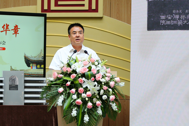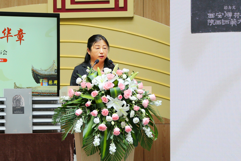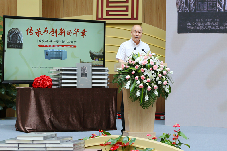 陕西师范大学出版总社刘东风社长、西安碑林博物馆党委书记周萍以及陕西省图书馆馆长周云岳分别发表了致辞。刘东风社长强调,这部全集不仅代表了重要的学术成果,更是对中华文化的深厚传承,它的出版承载了重大的文化责任和历史使命。周萍书记则指出,该全集汇聚了顶尖专家学者的智慧,展现了中华石刻艺术的精髓,为历史和文化研究提供了珍贵的资料。周云岳馆长表示,陕西省图书馆十分注重地方特色资源的收藏。西安碑林博物馆是陕西的文化名片,《西安碑林全集》是反映西安碑林收藏、研究的集大成之作,陕西省图书馆将继续举办各类活动,引导更多的读者从纸上碑林走向石刻宝库,感受传统艺术文化的魅力。