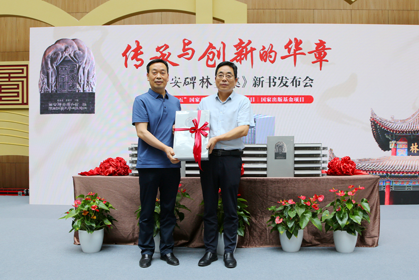 陕西师范大学出版总社向陕西省图书馆赠送了这套珍贵的《西安碑林全集》。陕西省图书馆馆长助理范光锋代表图书馆接受了赠书,并对出版总社表达了深深的谢意。