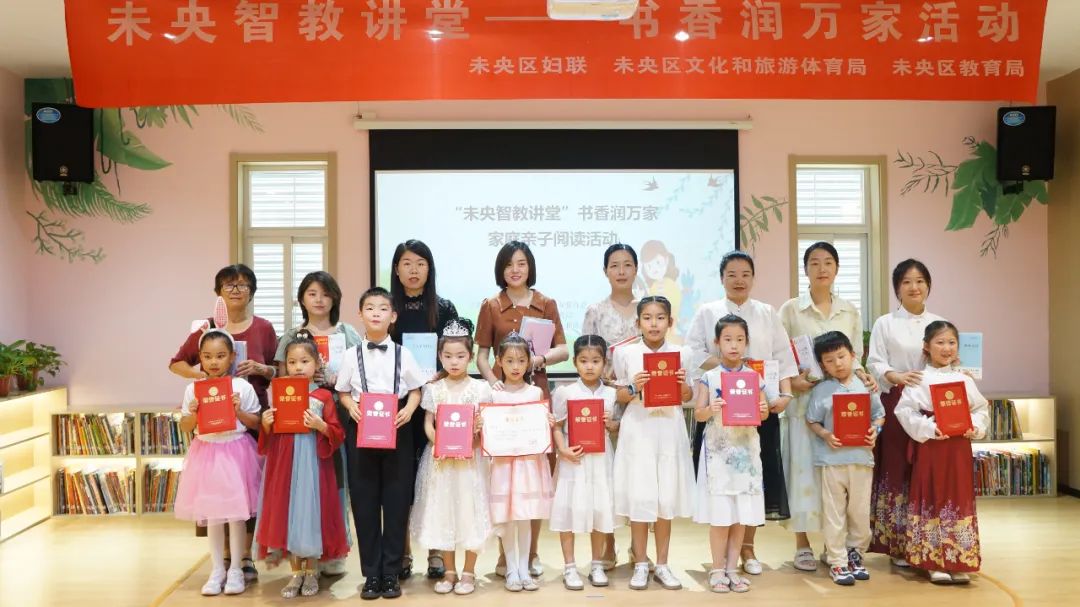 家庭是社会的细胞,亲子阅读是家庭教育中不可或缺的一部分。为深入学习贯彻习近平总书记关于注重家庭家教家风建设重要论述,落实立德树人根本任务,助力全民阅读从家庭做起、从娃娃抓起,引导广大家庭弘扬好家风、涵养好家教,6月29日上午,区妇联联合区教育局、区文旅局在区图书馆举办“未央智教讲堂”书香润万家——亲子阅读活动,30余组家庭70多人参加了此次活动。 活动现场,9组家庭代表进行了精彩的亲子阅读展演。 苏熙然朗诵《读中国》 朱安吉家庭朗诵《什么是祖国》 杨成蹊家庭讲绘本故事《小兔子学捐钱》 刘煊语家庭朗诵《送你一个长安》 周琪茗 周佳雯家庭朗诵《妈妈和我》 付成蹊家庭讲绘本故事《知错我就该》 裴皓宇 裴麦睿家庭朗诵《春之歌》 张祎容家庭讲绘本故事《竖着爬的小螃蟹》 余苧溪讲绘本故事《小白兔智斗大灰狼》 在精彩的亲子阅读表演后,区妇联为获奖家庭颁发了荣誉证书,向参加活动的孩子们赠送了少儿书籍,希望以书为媒,以阅读为纽带,搭建起家长与孩子共同学习、共同成长的桥梁,在阅读陪伴中滋养儿童美好心灵,陶冶情操、开拓视野。 下一步,区妇联将广泛开展亲子阅读活动及家庭教育活动,涵养道德,树立科学的家庭教育理念,培育书香家庭,传递良好家风家教,推动家庭文明新风尚,促进儿童健康成长,做好儿童成长的引路人、守护人、筑梦人。