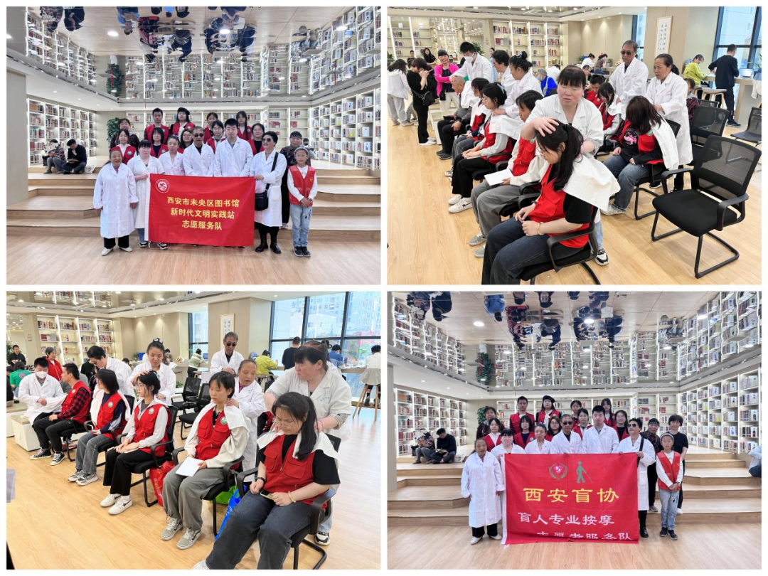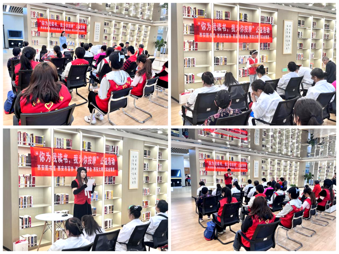 人间四月,春暖花开,春意正浓。在这最美的时节,西安图书馆携手西安盲协盲人专业按摩志愿者服务队,联合未央区图书馆志愿服务队,在4月13日上午开展了一场温馨而富有意义的“你为我读书,我为你按摩”阳光盲人伴读活动。 未央区图书馆志愿服务队为视障读者朗读了毛姆的《人生的枷锁》、朱自清的《荷塘月色》、萧红的《呼兰河传》余秋雨的《坦然的心,最美》、迟子建的《我的世界下雪了》等经典文学作品。他们用朗读之声传递知识的力量,温暖每一个心灵;盲人按摩师回馈以专业的按摩服务,为大家放松身体,消除疲劳。 残健互助共创美好,让我们一起在春日里播下爱的种子,点亮自己,照亮他人。