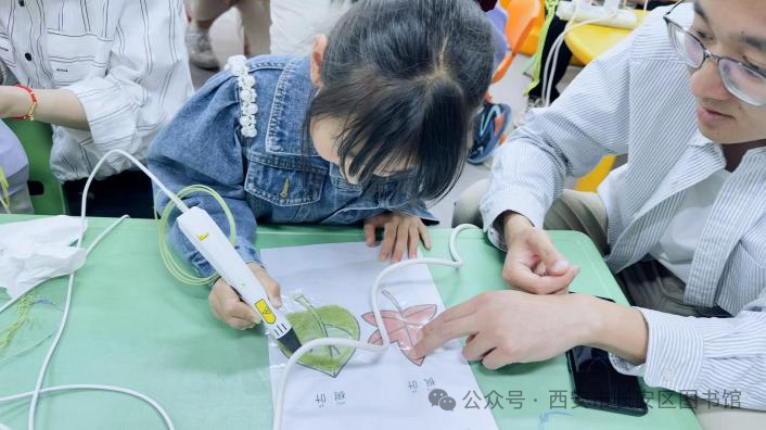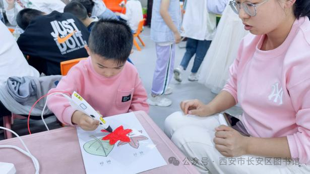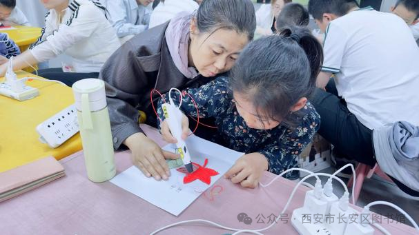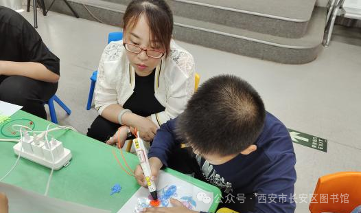 收费信息:免费“神笔在手,要啥都有。”2024年5月1日,在长安区图书馆一楼少儿阅览区,一场主题为“快乐创想 妙笔生花”的3D打印笔创作活动如期举行,共有20组亲子家庭参加了此次活动。 我们生活的世界是一个多维立体世界,但是我们日常生活中的画画、写字、拍照都是以平面的形式来展现我们这个五彩缤纷的世界,很难体现出我们想象中的世界。这节科普手工实践课,首先通过视频让孩子们认识了什么是3D打印,看着视频中的创作及作品,孩子们露出了惊奇的表情,引起一阵阵的感叹声;然后介绍了什么是3D打印笔、打印笔的结构、打印原理、使用方法、注意事项等。通过点、线、面、体等构图元素,逐步建立三维空间;最后孩子们根据老师的参考图案和指导,自己创作作品。 整个活动中,孩子们充满好奇,充分发挥自己的想象力和动手能力,不懂就举手问老师,很多小朋友创作欲满满,完成数个作品。“老师我要绿色的,我要粉色的,我要黄色的……”不时有小朋友找老师要制作材料,孩子们的创作欲望根本停不下来,最后完成了一个个独特的3D作品。 通过本次活动,激发孩子们的创新意识,提高他们的创新思维、三维造型、动手实践等能力。本次课程是连续剧的初演,后面的章节会越来越精彩,请家长朋友们持续关注西安市长安区图书馆公众号,继续参演动手实践,你将会收获更多。