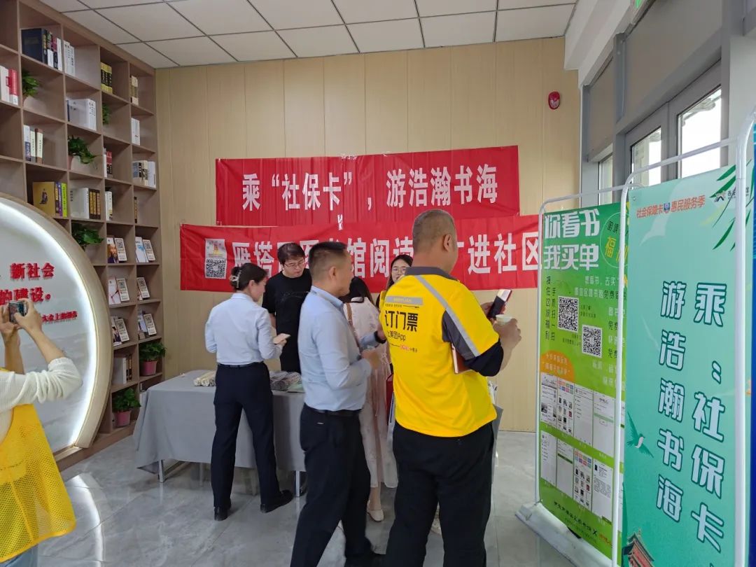 在第29个世界读书日到来之际,为了推动全民阅读活动,增进社区文化氛围,4月23日下午,雁塔区图书馆联合雁塔区人力资源和社会保障局在电子城街道立丰国际社区与居民们面对面交流,开展阅读推广及“社保卡”借阅功能推介活动。 为更好地贴合读者的实际阅读需求,更好地为广大读者服务,图书馆志愿者为群众详细讲解“你看书,我买单”活动,这项活动打破了传统图书的采购方式,加强了图书馆与读者的交流。此外,志愿者现场演示如何使用手机线上下单购书、阅读,帮助群众更好地参与“你看书,我买单”活动。 活动中,还向读者讲解了电子社保卡借阅图书的具体方法,并将社保卡借阅图书的方便性、快捷性进行普及。区图书馆已按全市统一规划部署,开通采用社保卡作为读者证这项公共文化服务功能,进一步提升市民借阅便捷度,提高全民阅读水平。 下一步,雁塔区图书馆将继续加强阵地建设,强化活动引领,培植阅读品牌,创新理念方式,全力推进全民阅读有效开展,不断提升人文素养,营造浓厚的读书氛围。