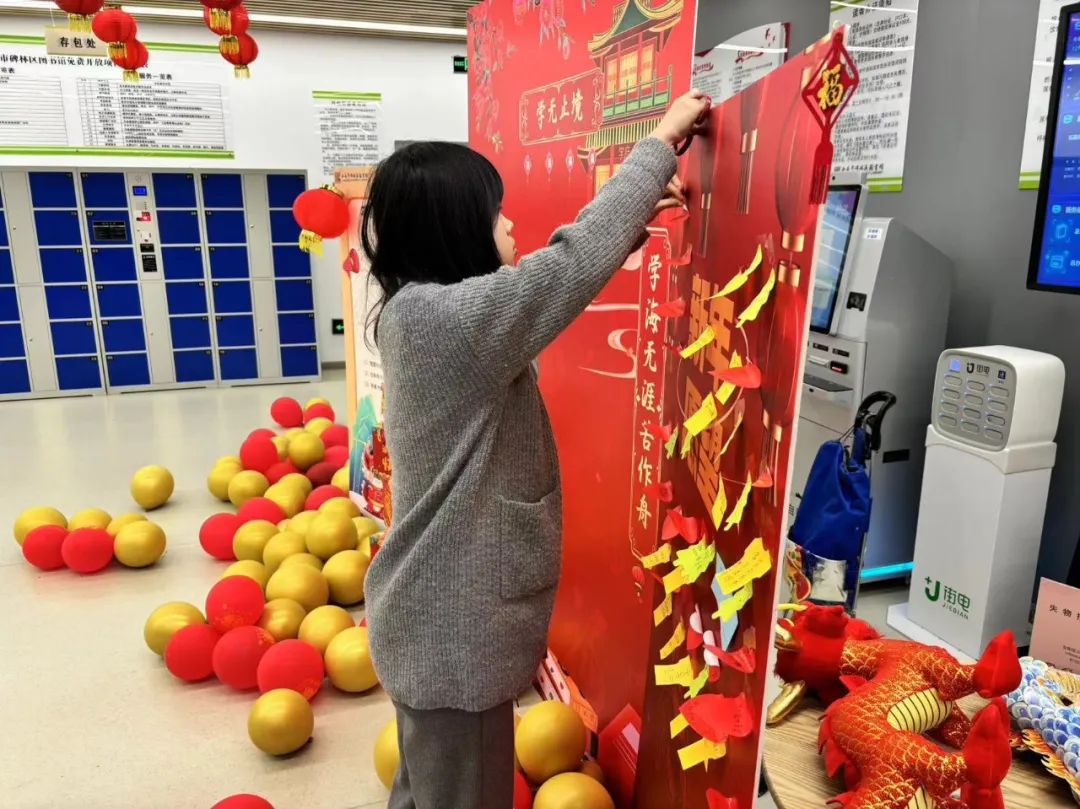 春节期间,碑图一直与大家相伴。读者们在书籍的海洋中徜徉,度过了一个个愉悦的阅读时光。大家在挑选自己心仪的图书并成功借阅后,纷纷来到前台领取心愿便利贴,写下自己的新年愿望,并亲手悬挂在“新年愿望墙”上。