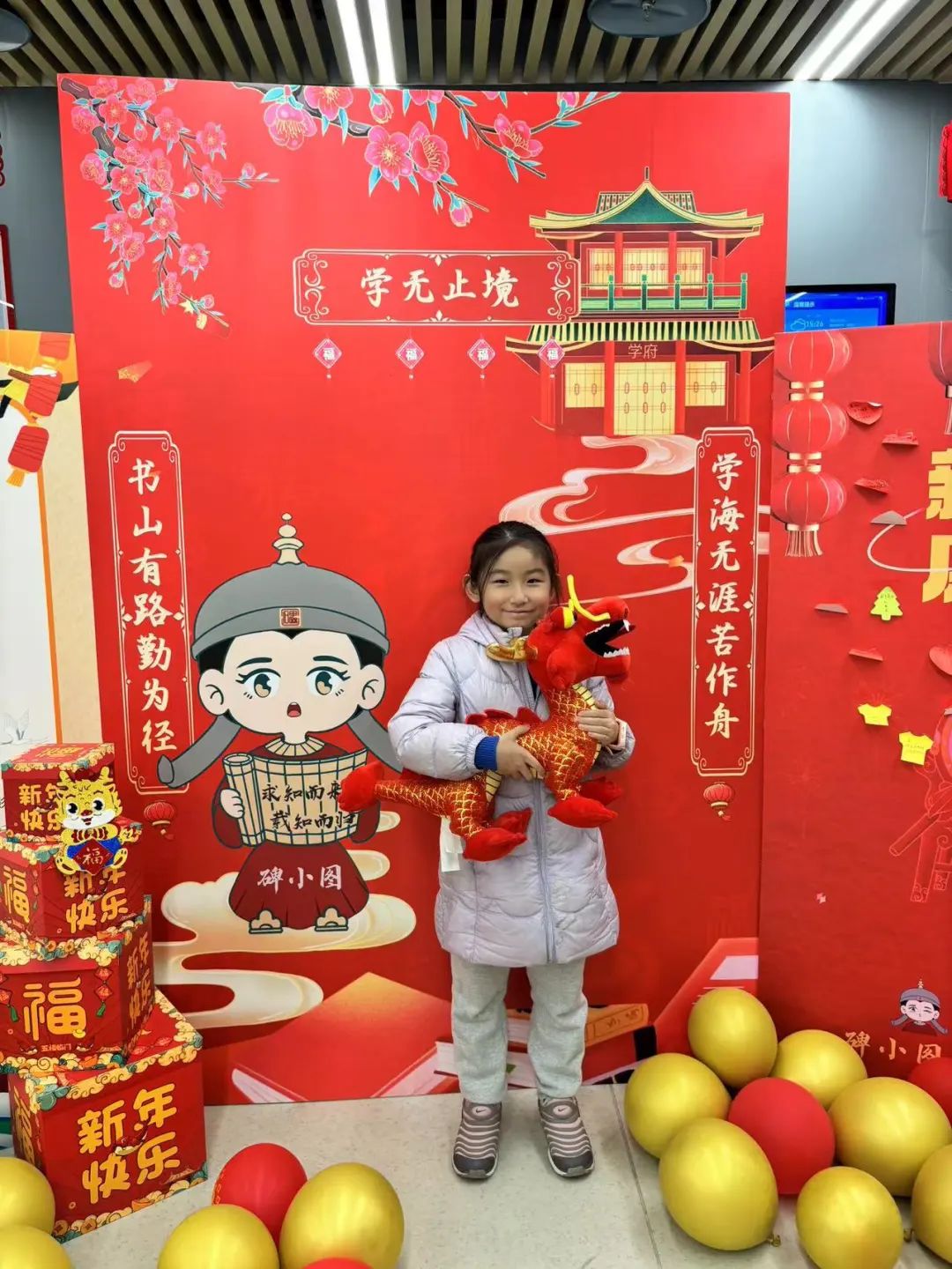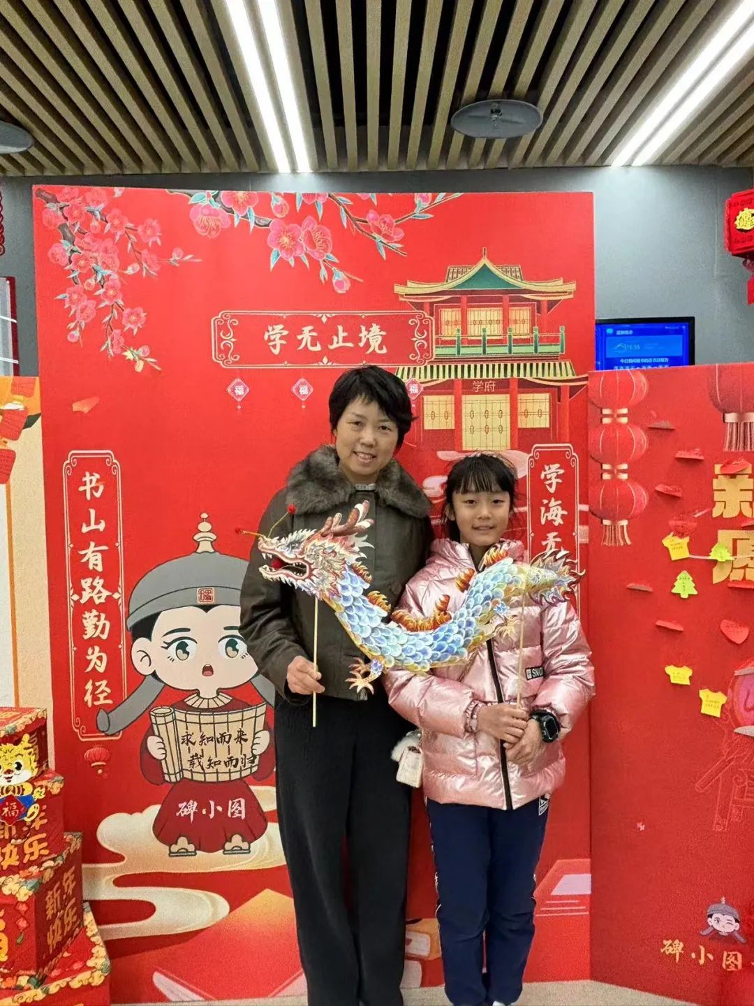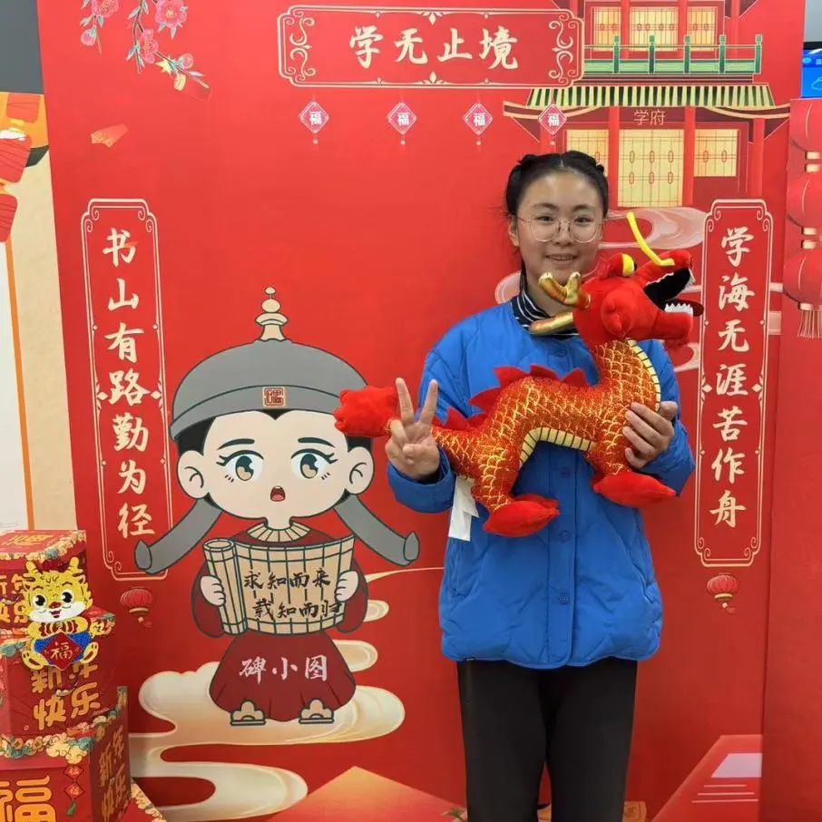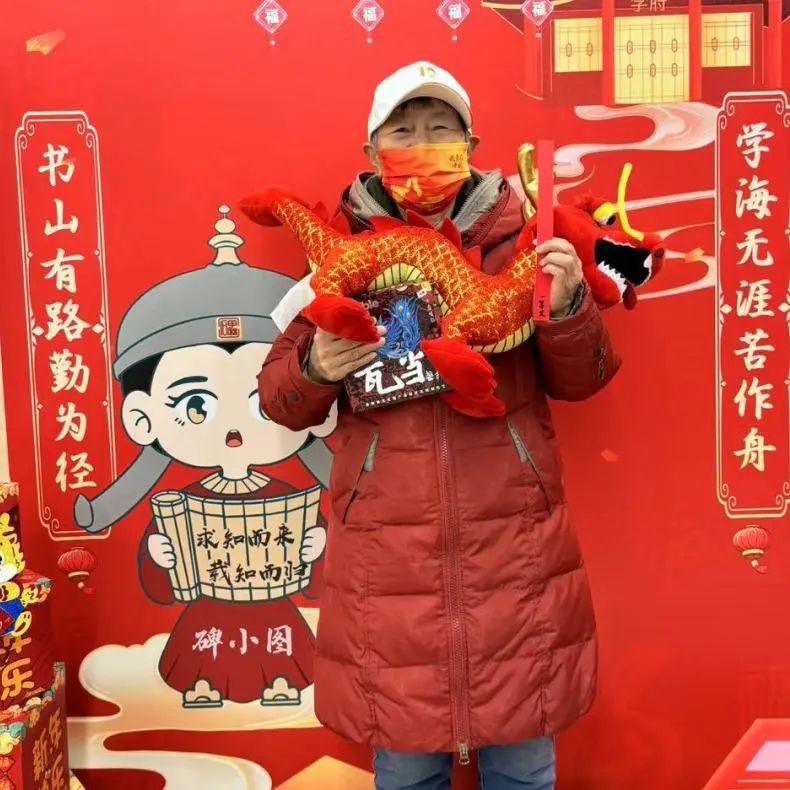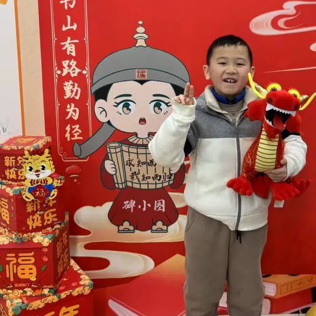 碑小图,是碑林馆可爱的Q版形象。在新春活动中,读者们携带着借阅的书籍和精美的龙型玩偶热情地与碑小图互动合影,记录下了新年美好、特别的瞬间。