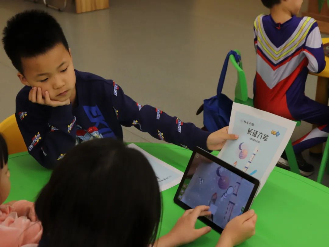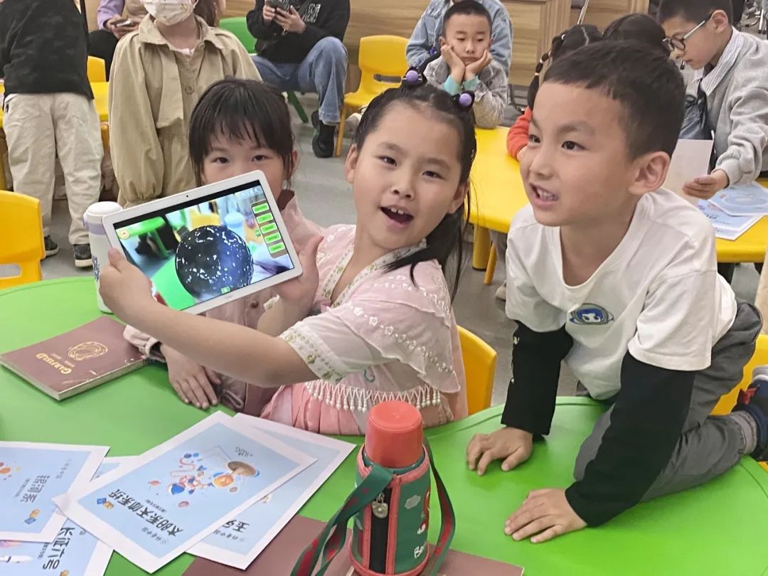 在接下来的AR互动体验环节中,小朋友们拿着平板,对准图画书上的航天模型图案进行扫描。“哇,太神奇了!我可以看到立体的飞船和卫星!”孩子们兴奋地喊道。平板中三维立体的航天模型仿佛将孩子们带入了一个真实的航天世界。小朋友们仔细观察着航天模型的每一个细节并纷纷与各种“航天器”和“天体”进行创意合影。