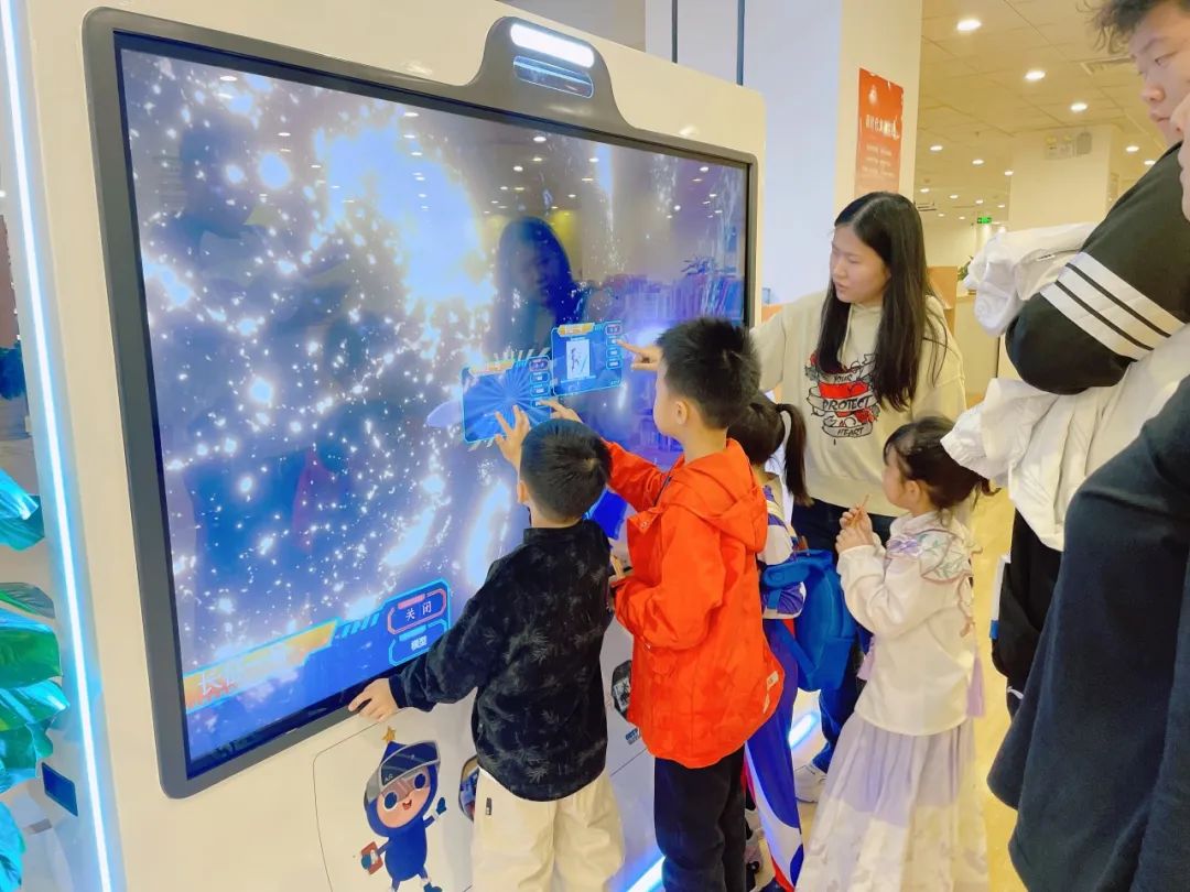 活动最后老师还带领大家体验了馆内AI裸眼立体百科大屏,孩子们在沉浸式互动中再一次感受着太空科技的震撼。