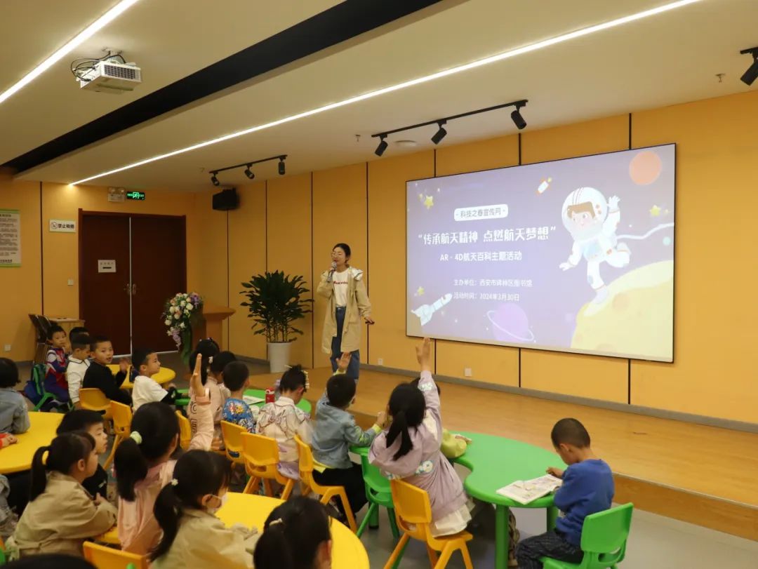 梦想是一颗种子,萌发于最初的探索心,相信每一个孩子在寂静的夜晚,仰望星空时都有一个小小的航天梦。为了普及航空航天知识,激发小朋友们的探索精神和创新意识,3月30日下午,碑林区图书馆举办了“传承航天精神 点燃航天梦想”AR·4D航天百科主题活动。孩子们在这里成为“小小航天员”,开启了一场奇妙的太空探索之旅。