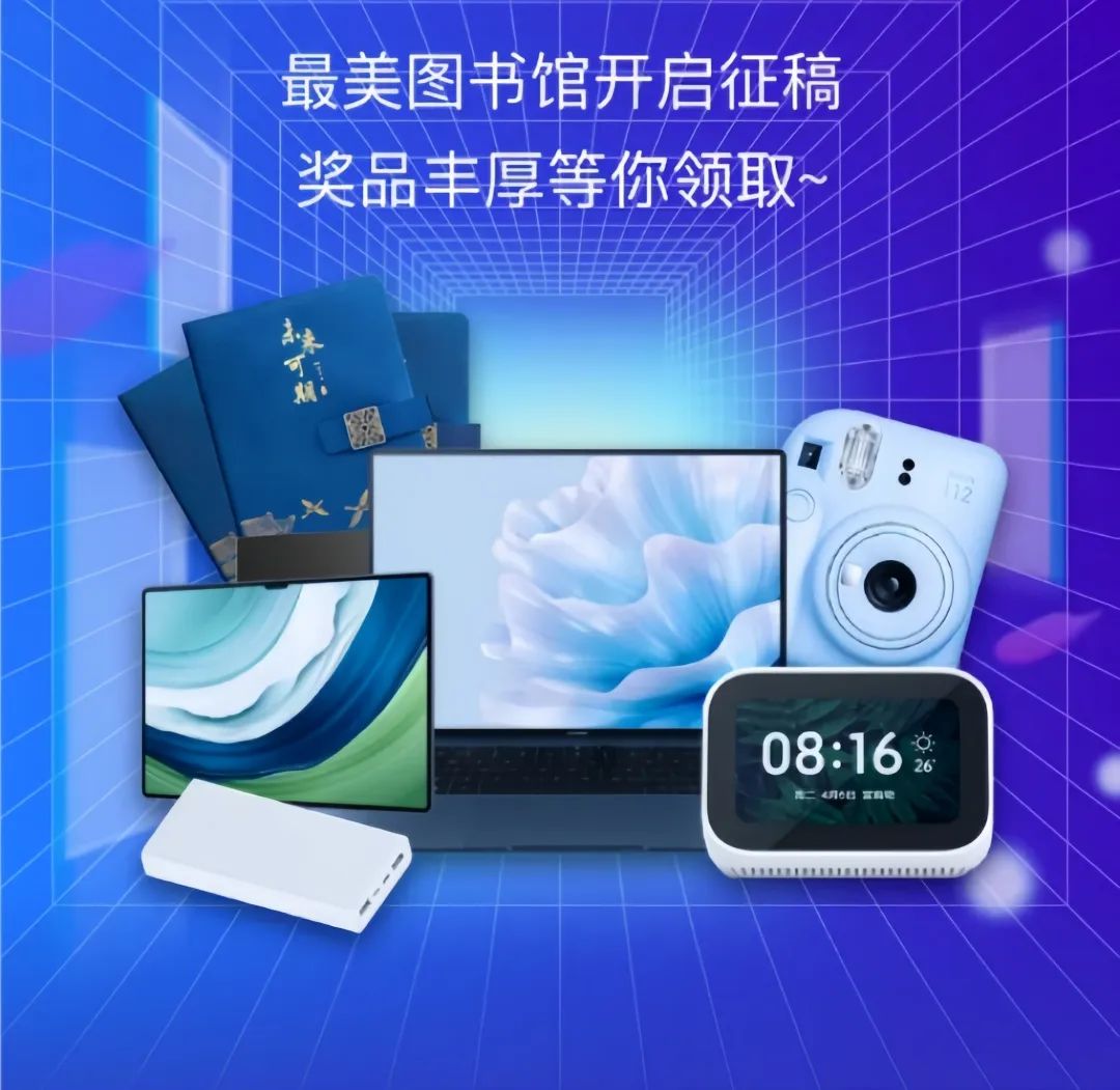 奖项设置 个人奖项: 特等奖1名,一等奖5名,二等奖20名,三等奖50名,四等奖100名,五等奖500名。 奖品如下: 特等奖:华为MateBook 16s 一等奖:华为 MatePad 11英寸 二等奖:富士拍立得 mini12 三等奖:小米小爱触屏音箱 四等奖:小米移动电源3 20000mAh 五等奖:精美笔记本套装