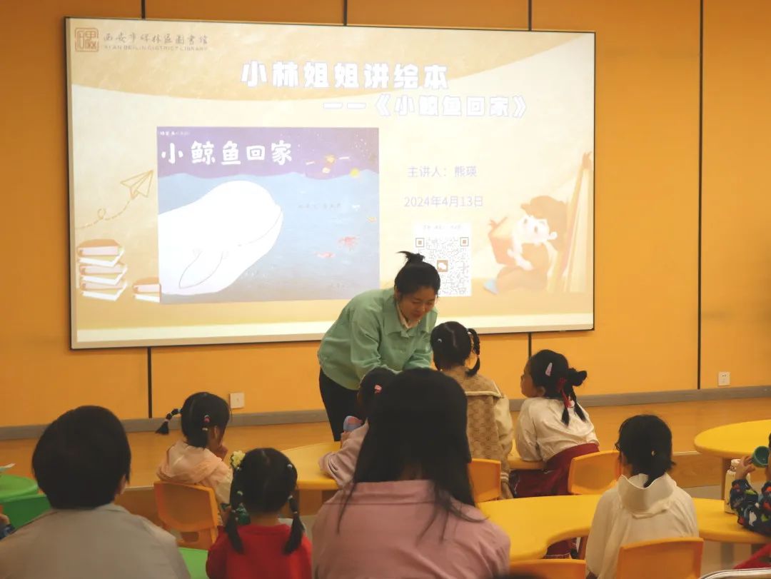 当你遇到困难或突发情况时,你会选择逃避还是冷静地思考解决办法呢?4月13日上午,碑林区图书馆在多功能厅内举办了“小林姐姐讲绘本”活动。本期讲读的绘本是:《小鲸鱼回家》,故事围绕鲸鲸和悟空两个主要人物角色展开,让我们一起去看看悟空遇到了什么困难,他又是怎么做的呢?