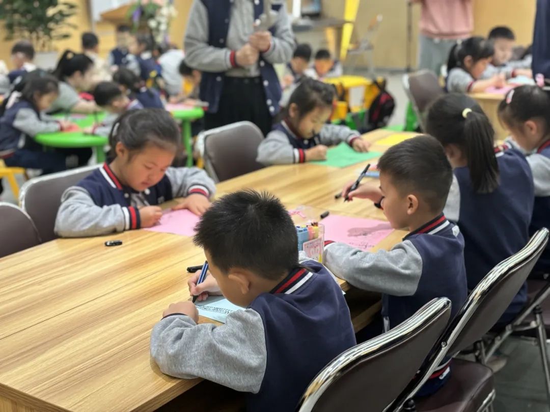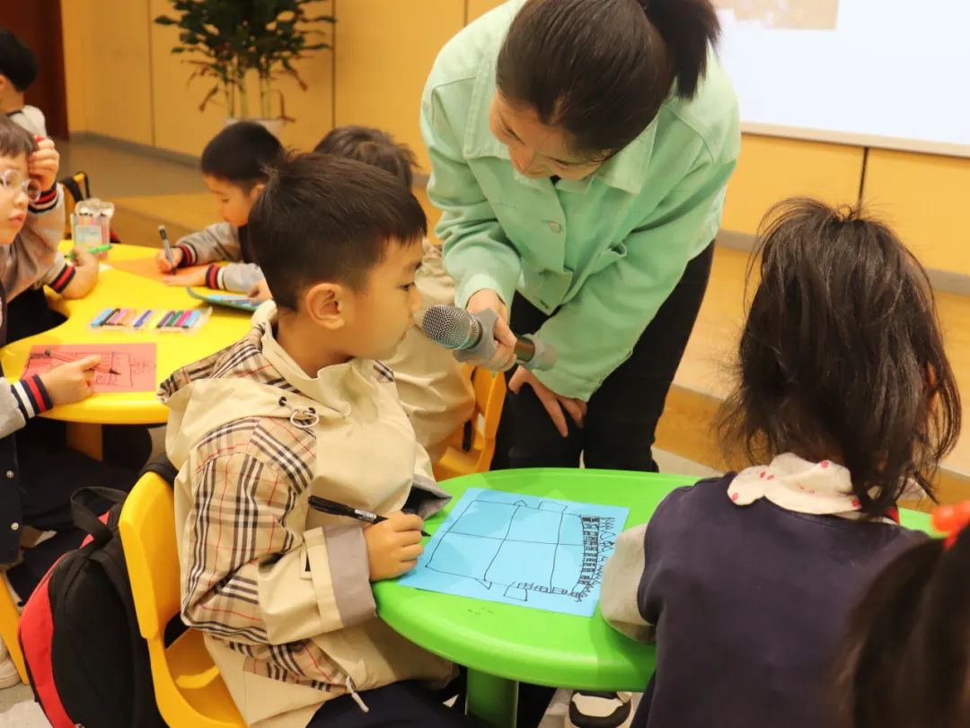 参观后,馆员还为孩子们讲述了许多图书馆的小知识,小朋友们聚精会神地聆听,在发现和探索中领略了书籍的乐趣,了解了图书馆的历史文化。收获满满后,每位小朋友都迫不及待地抓起画笔,画出了自己心中的“图书馆”模样。