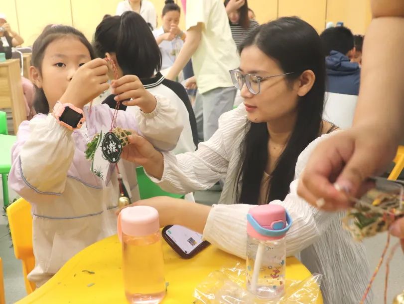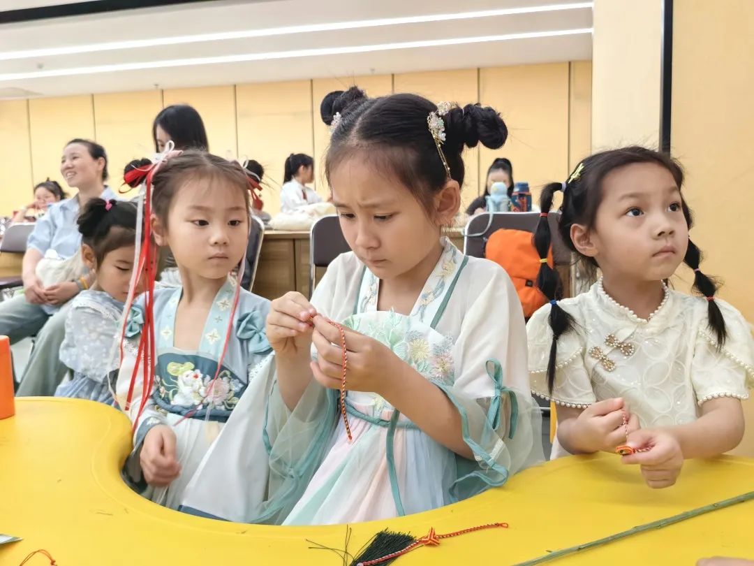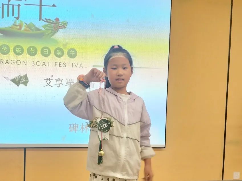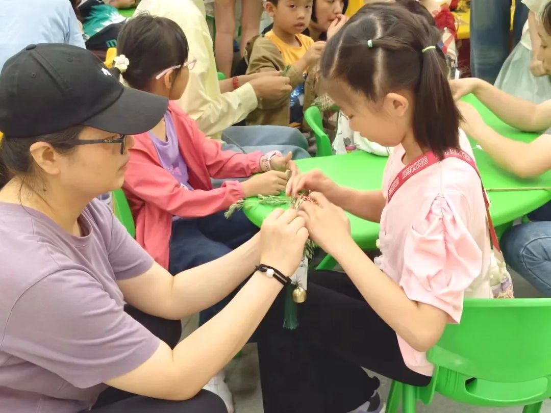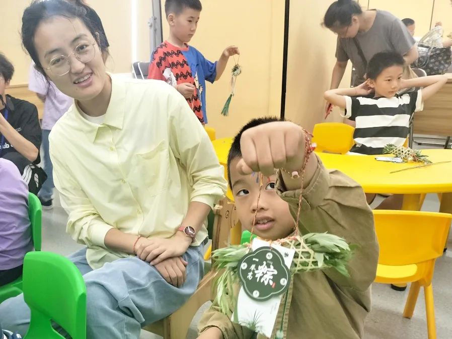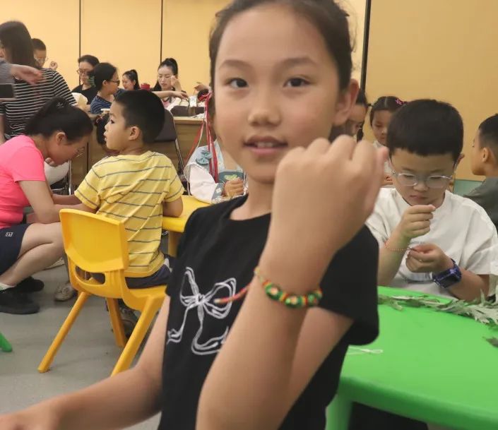 紧接着,孩子们又学习了如何制作端午祈福手绳。手绳是端午节常见的祈福物品,代表着平安和吉祥。在工作人员的带领下,孩子们用五彩的丝线,编织出一个个精美的手绳。他们有的将手绳系在自己的手腕上,有的想送给家人。孩子们兴奋地展示着自己的作品,脸上洋溢着自豪和喜悦的笑容。