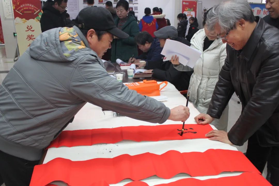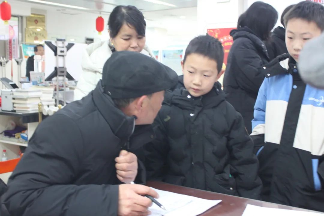 “妈妈,快点,前面还有对春联呢。”小男孩一手拿着刚才猜谜语得来的奖品,一手拉着妈妈走向那一条条红色的春联。 他眼睛盯着春联,似乎有些不知所措。“那咱们对这个吧,你看‘仁心处事’对什么合适呢?”妈妈指着一个春联跟孩子一起思考着,孩子把写出的下联拿给现场的老师看,老师耐心的指点着:“咱们对联不仅要词性和结构对应,还讲究平仄对立、形对意联……”,在老师的引导下,男孩茅塞顿开,赶紧修改着自己的用词,终于对出了满意的对联。看着老师将自己对出的春联用毛笔写在那红彤彤的正丹纸上,孩子的眼里有了光,心中有了希望。 “老师,您看看我对的这个可以吗?”后面的小朋友也都排着队急切地等着老师点评呢,老师乐呵呵的接过孩子手里的对联条……
