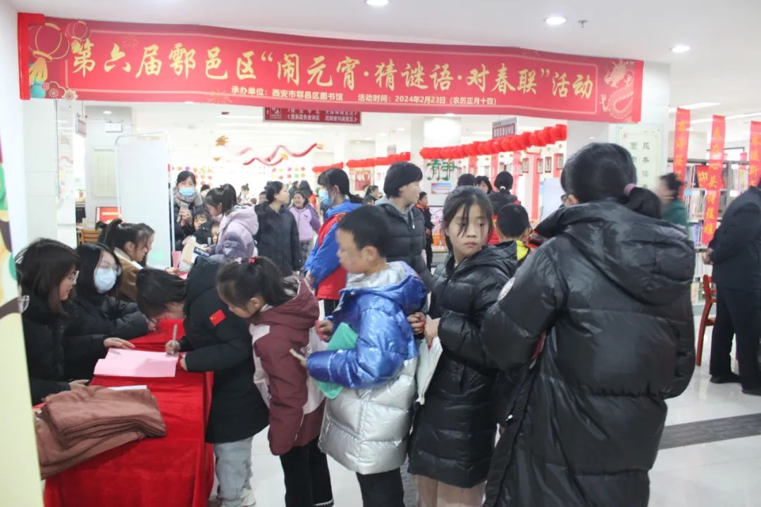 元宵节是我国重要的传统佳节,为了营造良好的节日氛围,丰富我区群众文化生活,按照鄠邑区委、区政府2024年春节文化活动安排,由西安市鄠邑区文旅局主办,区图书馆承办,区诗词楹联学会、 区摄影协会、区文化馆协办,主题为“来鄠邑过大年”的第六届鄠邑区“闹元宵·猜谜语·对春联”活动于2024年2月23日(正月十四),在鄠邑区图书馆一楼举办。