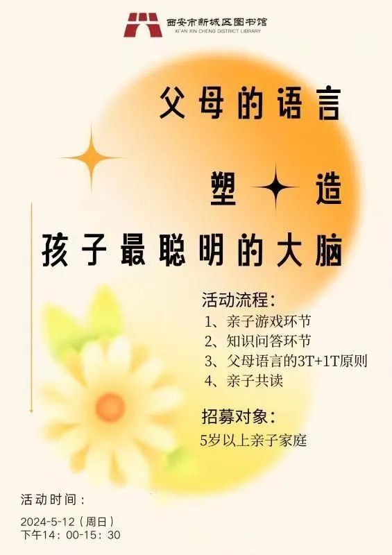 ·讲座时间·2024年5月12日(周日)14:00-15:30·适用对象·5岁及以上少年儿童·讲座地点·新城区图书馆负一楼会议室·报名方式·扫描下方二维码报名参与
