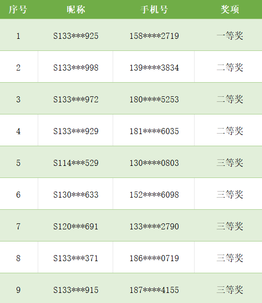 根据活动规则,现公布获奖名单,快来看看你有没有上榜吧!