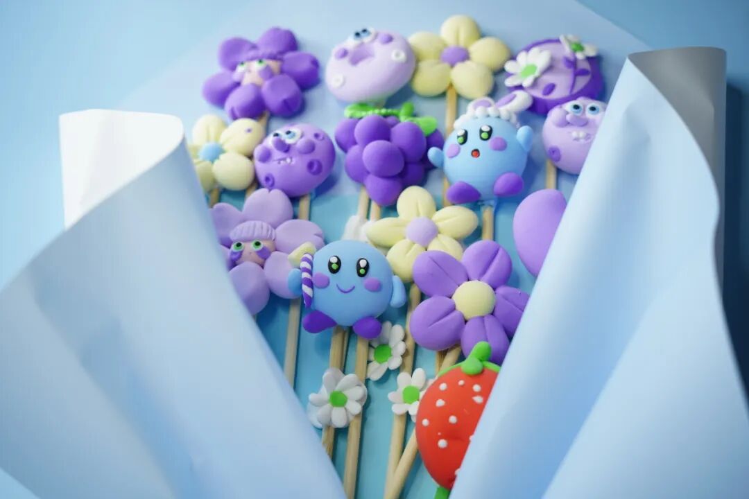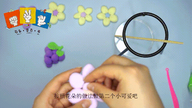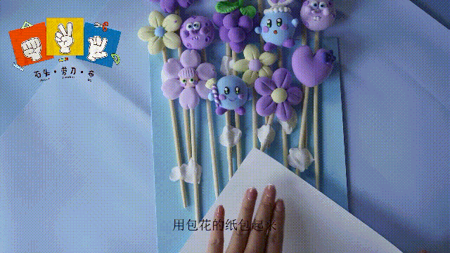 美妙创意 粘土花束 春天是一个充满生机和活力的季节, 它以独特的方式揭示了大自然的奥秘和魅力。 花卉,作为春天最为明显的特征之一, 成为了大自然赐予我们的一份厚礼。 春天的花卉种类繁多, 五彩斑斓,争奇斗艳。 其中,最引人注目的莫过于 那些绚丽多彩的花卉。 樱花、桃花、杏花、郁金香、油菜花等, 它们在春天绽放出绚烂的色彩, 给人们带来了无尽的惊喜和愉悦。 ·美妙创意 / 粘土花束 — 准备材料 — 粘土/木棒/双面胶/剪刀/丝带/卡纸 — 1 — 将粘土揉成杏仁状 然后轻轻压扁 — 2 — 用工具划出花瓣纹路 捏一个不同颜色的小圆球 将花瓣粘在圆球上 — 3 — 捏几个紫色小圆球做葡萄 再用绿色捏两天叶子 并划出叶子纹路 — 4 — 将叶子粘在葡萄上 — 5 — 捏几个圆圆的小精灵吧 将五官补充完整 — 6 — 眼睛多叠几层会更有神 — 7 — 身上的纹路要记得添加哦 然后加上嘴巴 — 8 — 按照制作花朵的方法再做一朵颜色不一样的花 眼睛鼻子也要加上哦 — 9 — 然后再制作一个小精灵吧 先将眼睛粘好 — 10 — 揉一个长条做嘴巴 — 11 — 可恩爱的脸颊和四肢也粘上吧 — 12 — 把两个不同颜色的长条扭在一起 制作小精灵魔法棒 — 13 — 捏一个五角星装饰在魔法棒上 — 14 — 按照相同的方法多做一些花朵和小精灵 再用粘土将花朵和小精灵错开粘在卡纸上 — 15 — 再用包花纸包起来 — 16 — 整理好皱褶 — 17 — 系上丝带 — 18 — 扎上蝴蝶结 — 19 — 粘土花束就做好啦!