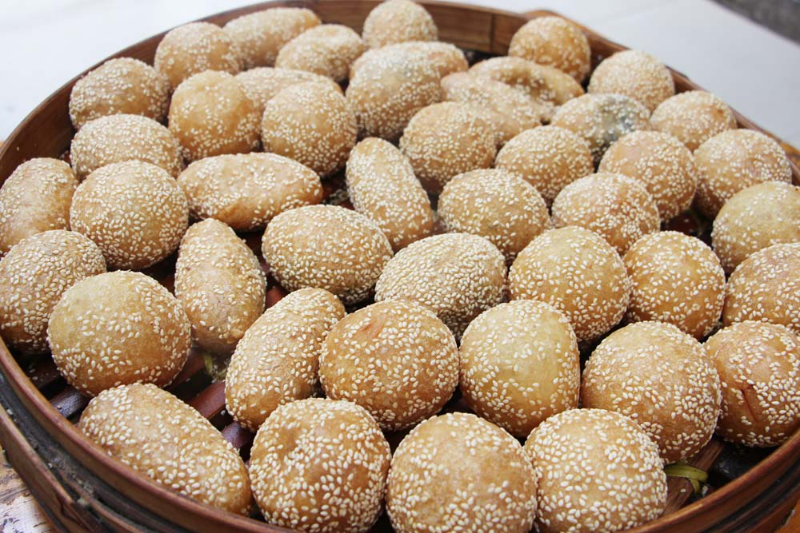 “煎堆饼,金银满屋” 。春节期间,煎堆成为家家户户的必备佳肴,更是祭祖祈愿的珍品。圆球造型,象征团圆和满足,糯米粉的皮,馅心多样,甘甜与浓香交织,是新春自品或赠礼的理想选择。