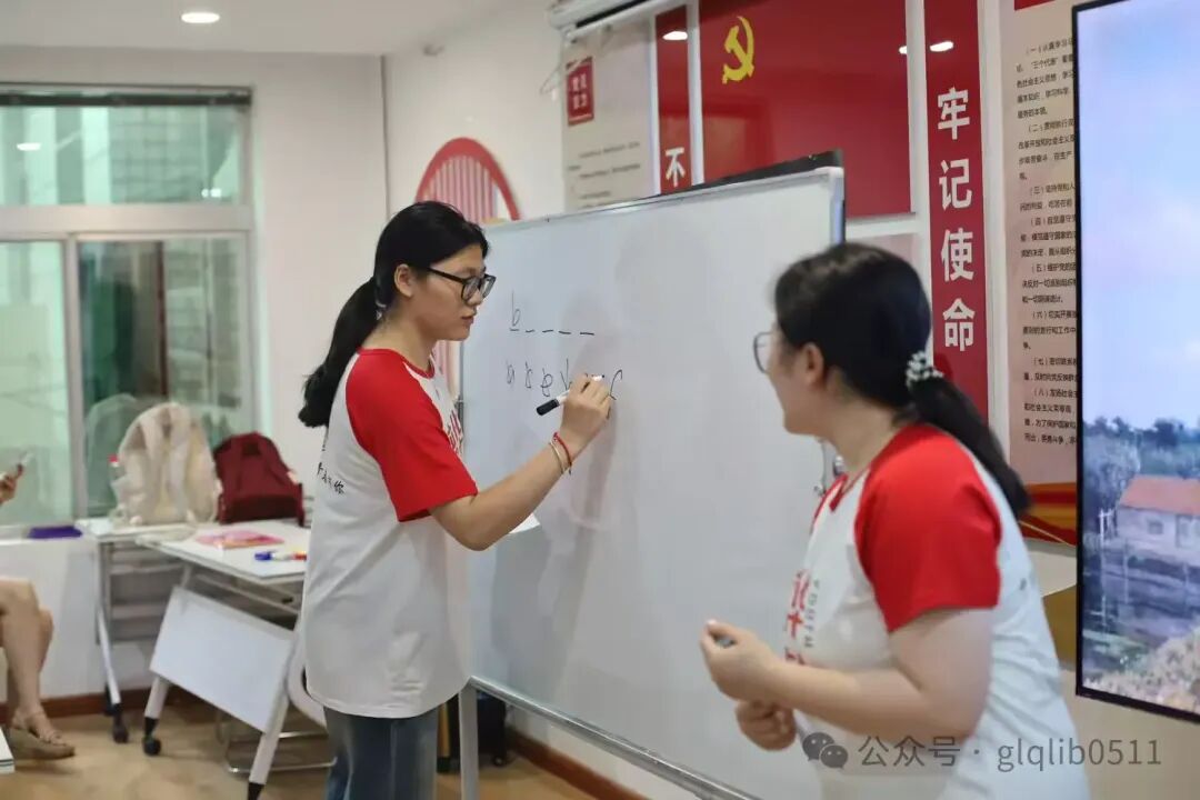 游戏环节高潮迭起,小朋友们与队员们并肩作战,共同挑战猜字母的趣味任务。每当一个单词被准确猜出,队员们便耐心地讲解该词的含义与日常用法,不仅加深了孩子们对词汇的理解,也激发了他们学习英语的浓厚兴趣。