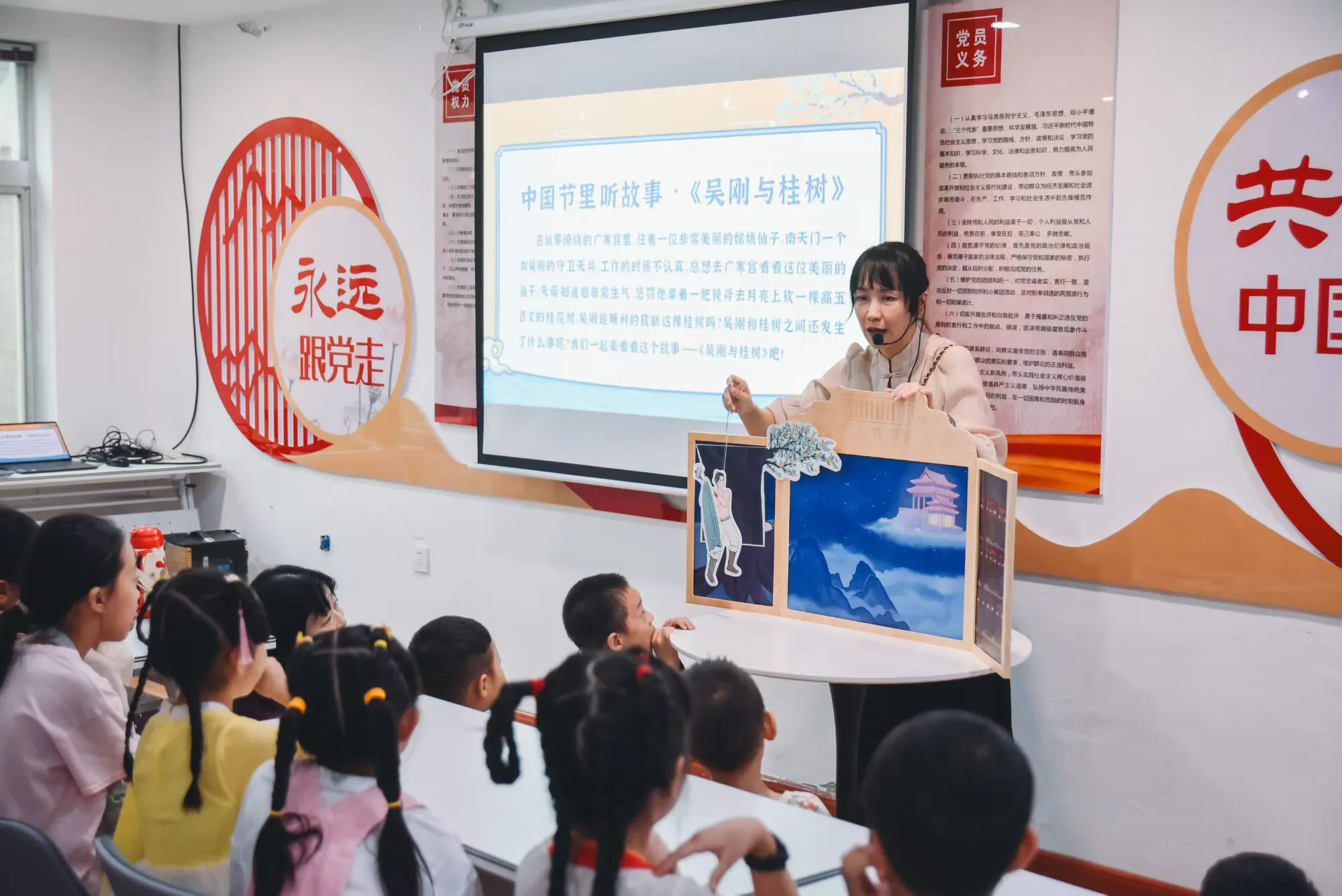 继而,在中国传统节日故事分享环节,心宇老师采用故事盒子的方式,为孩子们细致讲述了《吴刚与桂树》的经典故事。故事叙述了吴刚这一青年,渴望成仙,然其在学习过程中缺乏耐心,稍有成就即感烦躁。最终,老神仙将他送往月宫,令其砍伐桂树,以考验其耐心,唯有连续砍伐三百次,方能倒树成仙。然而,吴刚砍至一百余次便失去了耐心。稍作休息后,发现桂树伤口自行愈合,毫无损伤。吴刚不得不继续砍伐,至今未曾间断。这个故事向我们昭示了一个道理:无论何事,皆需持之以恒,耐心专注,急功近利的行为注定失败,唯有不懈努力,方有可能达成目标。