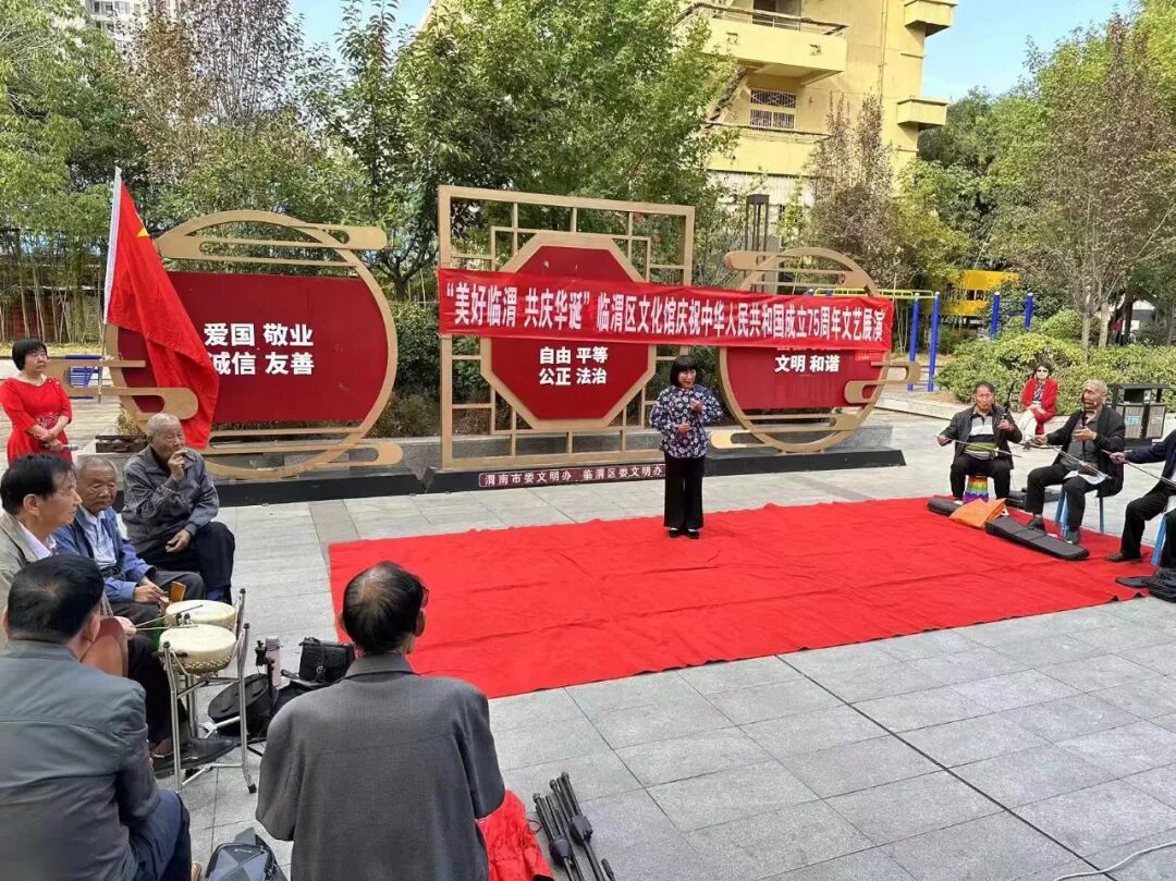 10月份,临渭区文化馆组织先后组织舞蹈、戏曲、红歌联唱、综合文艺演出等节目参加了由临渭区旅游局主办,临渭区文化馆承办的庆祝中华人民共和国成立75周年系列活动之“文化惠民 四送六进”文化志愿服务进基层活动,先后在南塘社团、四号信箱社区、朝阳公园、槐衙社区、沋河公园、人民公园等地相继开展。此次活动分别由秦东艺术团、好朋友合唱团、葫芦丝、新编剧戏曲社、三贤戏曲、兴盛剧社等群众社团承办。