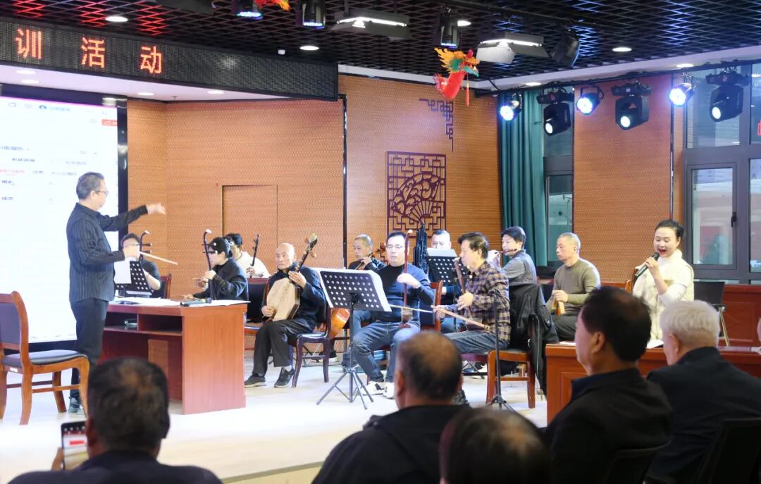 各位老师主要从碗碗腔音乐演奏、演员唱腔以及新创作曲面《渭南自古出圣贤》等方面进行了详细的教学指导,学员们学习热情高涨,积极参与互动,现场氛围热烈而有序。