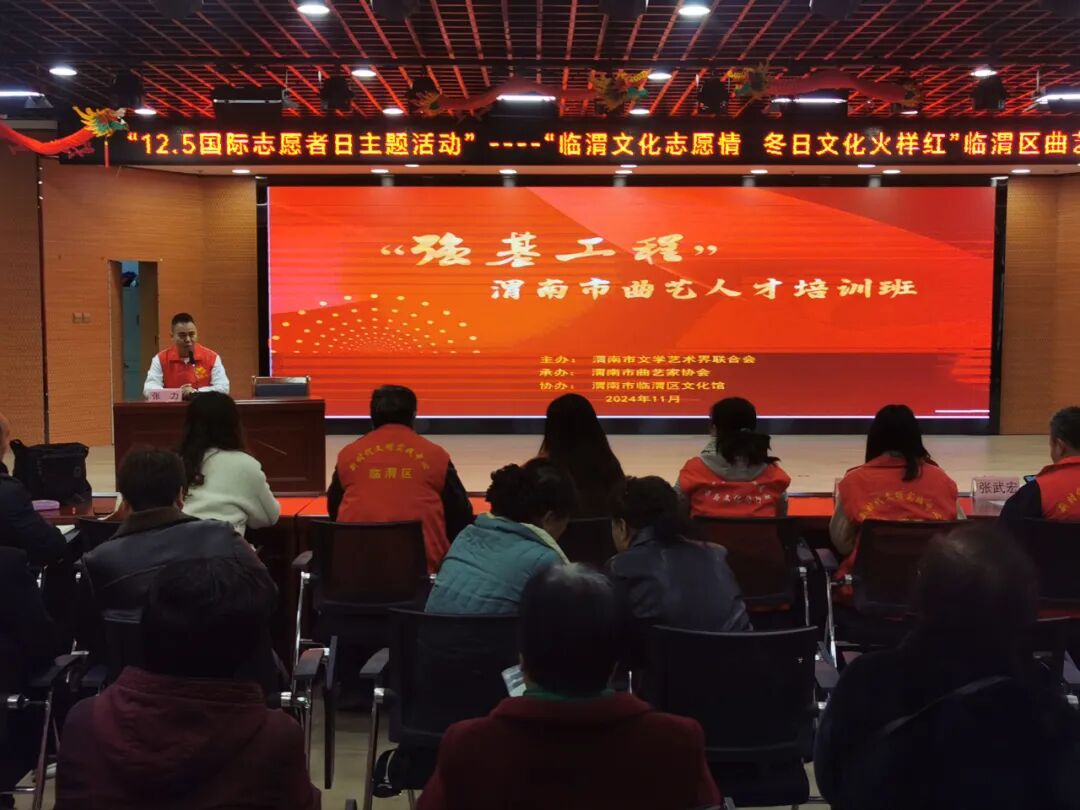 11 月 29 日上午,在国际志愿者日即将来临之际,由渭南市文学艺术界联合会主办、渭南市曲艺家协会承办、渭南市临渭区文化馆协办的“临渭文化志愿情 冬日文化火样红”“强基工程”渭南市曲艺人才培训班于临渭区文化馆一楼多功能教室正式拉开帷幕。此次活动作为“12.5 国际志愿者日主题活动”的重要组成部分,旨在通过曲艺培训传承文化技艺,弘扬志愿服务精神。