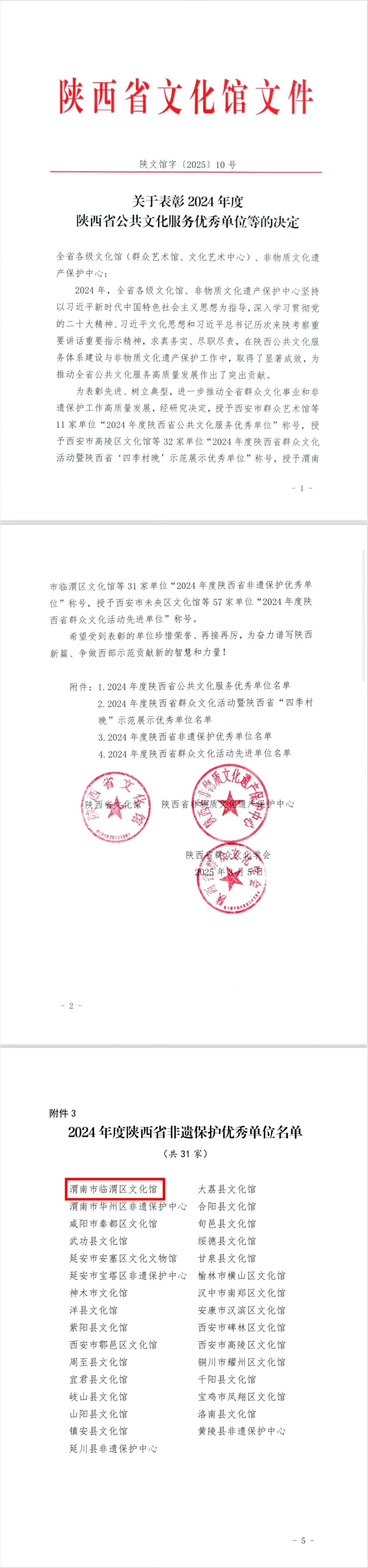 3月7日,全省文化馆理论研讨和全国优秀案例分享活动在陕西省文化馆曲江馆区多功能报告厅举行。会上,陕西省文化馆发布《关于表彰2024年度陕西省公共文化服务优秀单位等的决定 》文件,临渭区文化馆荣获2024年度陕西省非遗保护“优秀单位”。