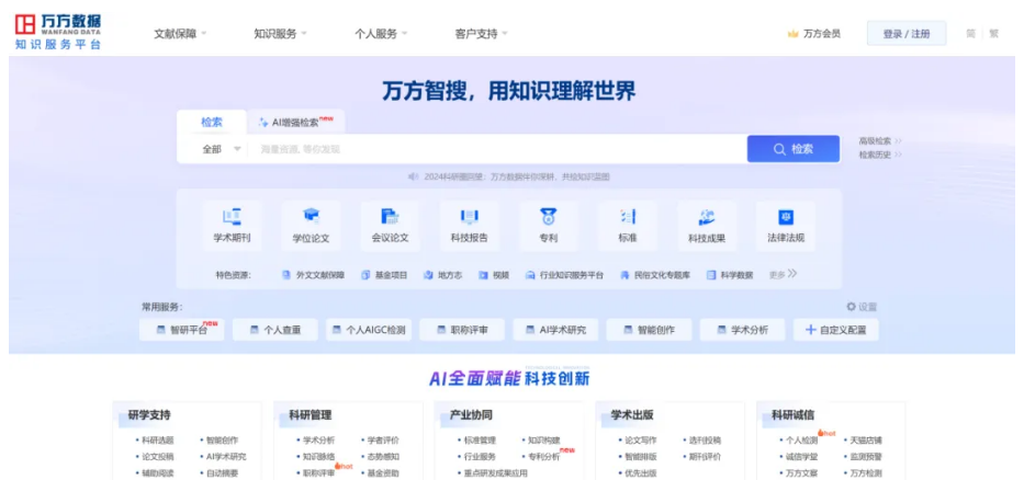 基于海量高品质知识资源和知识发现技术,万方数据库为用户提供专业文献检索、多途径全文获取、云端文献管理及多维度学术分析等功能,全面服务于用户的科研创新。