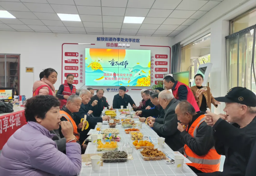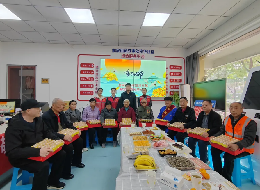 金秋送爽,丹桂飘香,又逢重阳佳节。为践行中华民族“尊老、敬老、爱老、助老”的传统美德,丰富老年群体精神文化生活,推动公共文化服务精准惠民,10月28日,渭南市图书馆携手解放街道光华社区分馆,开展“书香重阳·阅享华诞”敬老志愿服务活动。以文化为纽带,将“书香流动·文化育民‘四送六进’”惠民活动“图书进社区”举措落到实处,为空巢老人、环卫工人等群体送去节日的问候与文化的浸润。