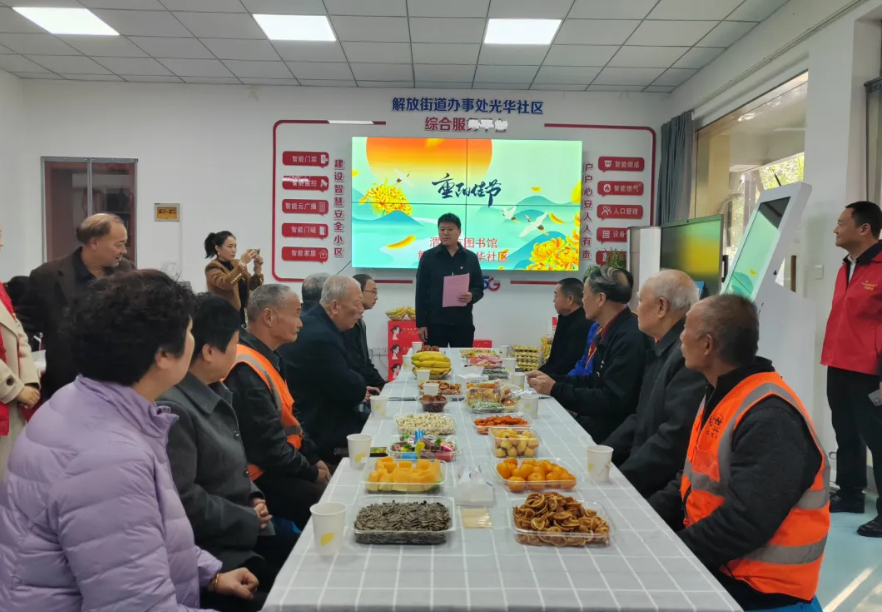 活动伊始,市图书馆馆长赵凯与解放街道光华社区书记肖德义分别致辞。向空巢老人、环卫工人致以最诚挚的节日祝福,阐述此次活动以书香传递温暖、以文化滋养心灵的初衷,希望通过这场活动,让老年朋友们感受到社会的关怀与文化的魅力,在重阳佳节收获一份别样的精神慰藉。