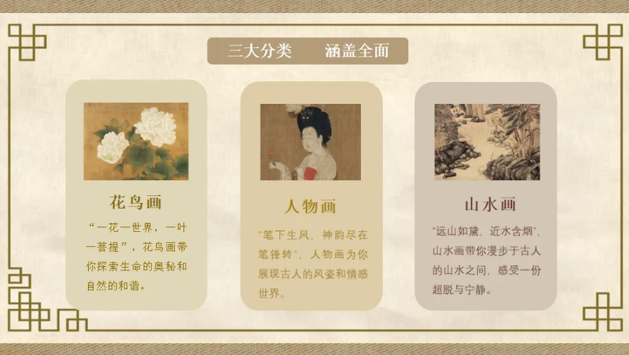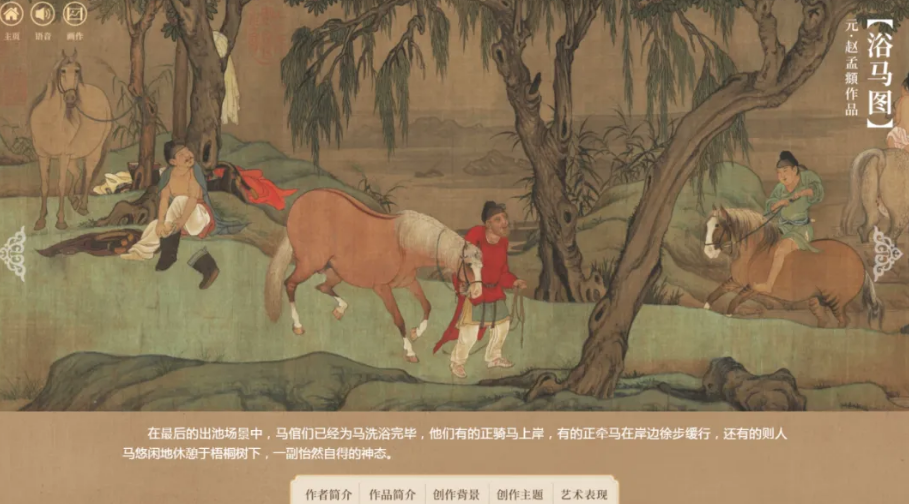 在如今这个信息爆炸、瞬息万变的时代,你是否时常感觉被各种喧嚣和浮躁所裹挟?你是否曾渴望寻得一方净土,让心灵得到栖息,让生命得到滋养? 1.资源简介 “知识视界”中国书画赏析平台,是一个以呈现和赏析中国历代书画精品为主的学习平台,平台收录了从魏晋南北朝至近现代两千多年间的中国历代珍贵书画作品。平台通过图文结合的形式,对创作者的生平、作品的创作背景、创作主题、艺术手法等知识作了详细的介绍,并融入了丰富的互动元素,让传统书画作品在数字技术的加持下更佳生动辉煌。 在数字书画平台上,你能在山水之间体会到流淌着的诗意,能在花鸟之间窥见万物弥漫着的生机,能在古人飘逸的衣裙、优雅的举止间领略他们迷人的风采和隐秘的内心…… 它们将以美和智慧照亮你,提升你对艺术的感知,让你在繁忙与浮躁中找到一份难得的慰藉与静谧。 所以,无论你是希望在浩瀚的艺术海洋中寻觅一份独有的宁静和共鸣的艺术小白,还是渴望在墨香与色彩间寻找灵感的资深书画艺术爱好者,中国书画赏析平台都将是你不可多得的精神家园。