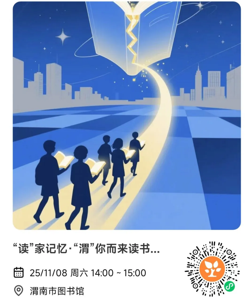 为响应全民阅读号召,构建书香社会,打破成人读者群体的“孤读”状态,让阅读从私人体验走向公共分享,让不同的灵魂在书籍的桥梁上相遇、碰撞,激发更深层次的阅读兴趣与思考,渭南市图书馆将开展“读”家记忆·“渭”你而来读书分享会,为成年读者打造一个开放、包容、温暖的阅读交流平台。