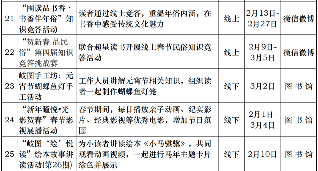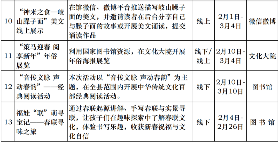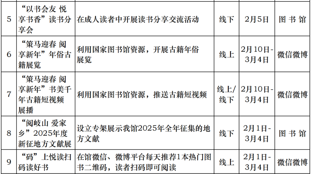 岐山县图书馆2026年“书香中国年 悦读迎新春”春节文化活动安排表
