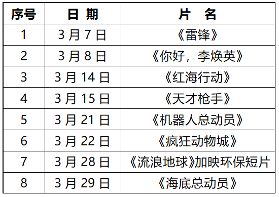 “春风沐书香・光影润心灵”公益影视展播安排表