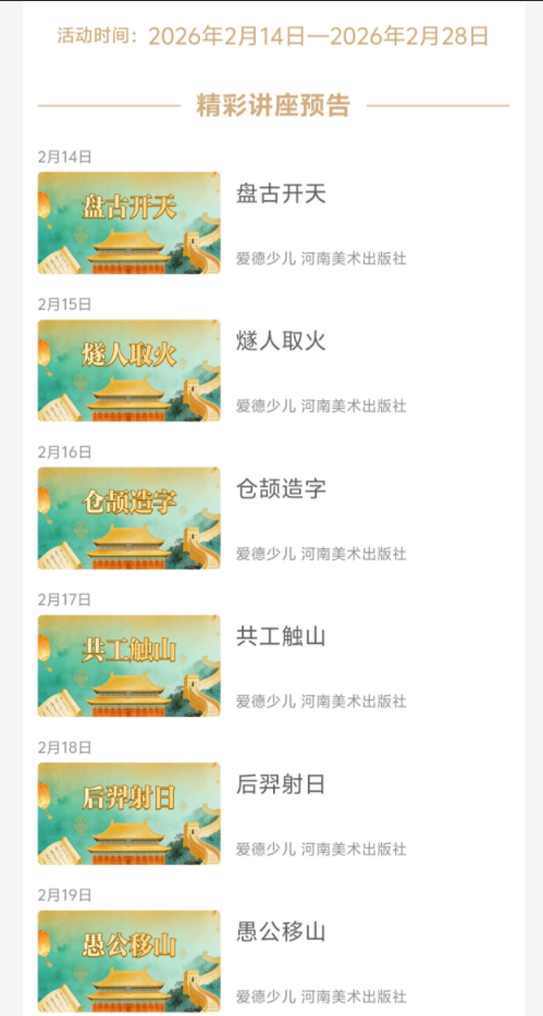 “这个绘本打卡活动特别有意义,每天和孩子一起读中国经典故事,不仅培养了孩子的阅读习惯,还让孩子了解了诸多传统典故,寓教于乐,希望图书馆今后多举办这样的活动。”一位参与岐山县图书馆“故事话中国”绘本打卡活动的家长由衷感叹道。为丰富少儿读者春节期间的精神文化生活,让中华经典文化浸润童心,岐山县图书馆联合超星有声数字图书馆开展“故事话中国”绘本打卡活动。活动以经典绘本为载体,以中国传统故事为核心内核,凭借趣味十足的打卡形式吸引了众多少儿及家长踊跃参与,收获了良好的文化传播效果与社会反响。本次活动于2月14日启动,2月28日结束,历时15天。活动参与方式便捷,读者关注岐山县图书馆微信公众号、进入“超星读书”小程序,即可每日解锁一则绘本故事完成打卡,有效调动了参与积极性。活动精选《盘古开天》《花木兰》等15个经典神话传说与民间典故,将传统文化转化为鲜活绘本画面,让少儿读者在打卡中感受中国故事魅力,领略传统文化精髓,实现“读经典、学文化、促成长”的目标。同时,活动还设置丰富奖品,累计打卡11-15天即可参与抽奖,进一步提升了大家的打卡积极性。活动结束后统计显示,全国共有7708名用户参与,其中我馆142组亲子家庭参与打卡及抽奖环节,参与热度颇高。此次“故事话中国”绘本打卡活动,将中华优秀传统文化与少儿阅读习惯培养相结合,既为少儿读者的春节假期提供了充实的精神文化食粮,也搭建了传统文化传播的便捷平台,有效激发了少儿对中国经典故事的兴趣,让孩子们在潜移默化中感受传统文化魅力,助力中华优秀传统文化在青少年群体中落地生根、薪火相传。(杨苗)