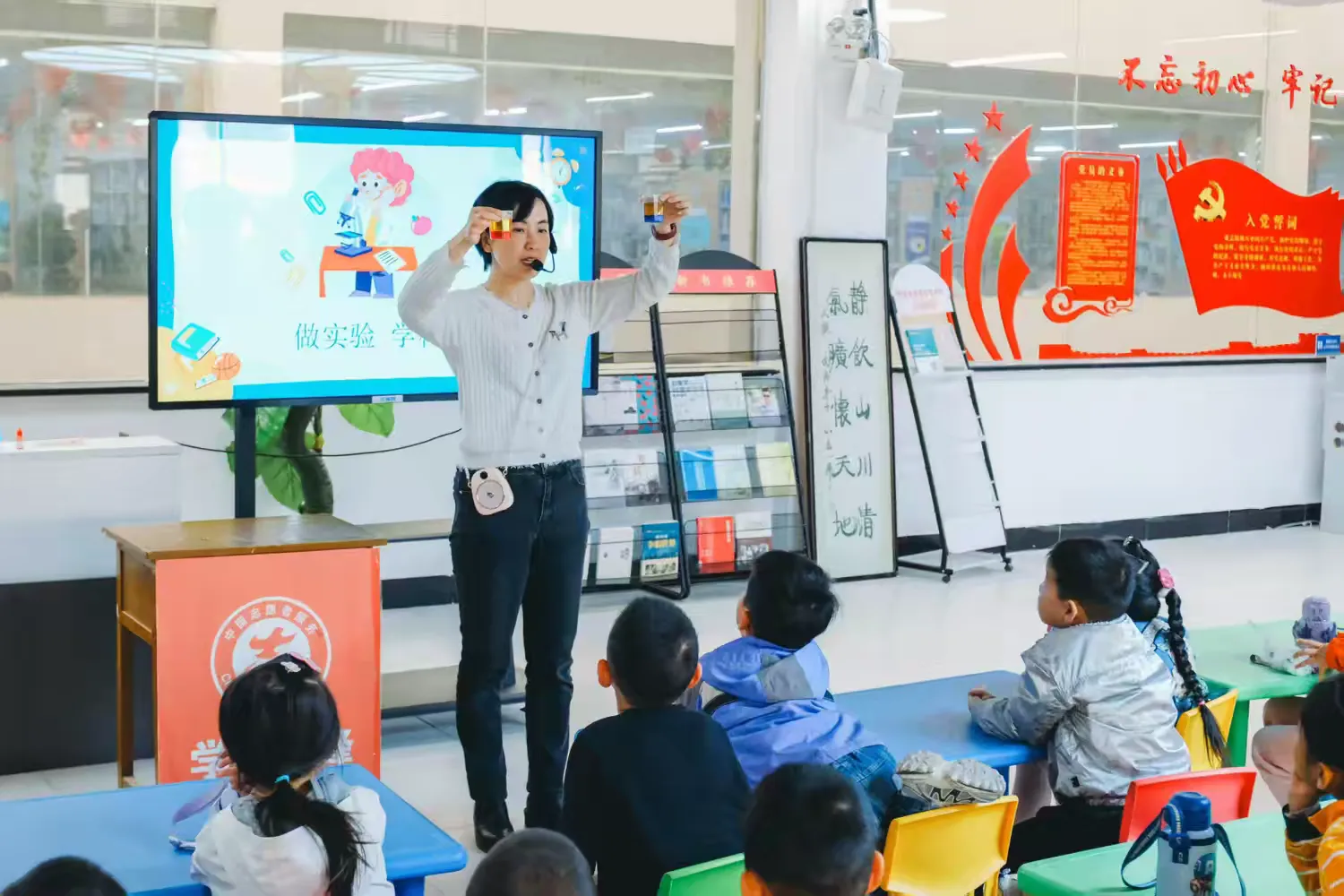 互动环节中,孩子们围绕课堂上的趣味实验踊跃提问,老师则以第六辑故事为引子,分享了学习科学的三个实用方法:一是精读《米吴科学漫画》这类趣味科普读物,在冒险中轻松掌握知识 ;二是观看科普视频,拓展视野;三是开展海底火山实验,借助酸碱中和的科学原理,模拟出海底火山喷发的震撼场景,让孩子们直观看到液体密度差异与化学反应带来的奇妙现象,轻松理解相关化学知识。