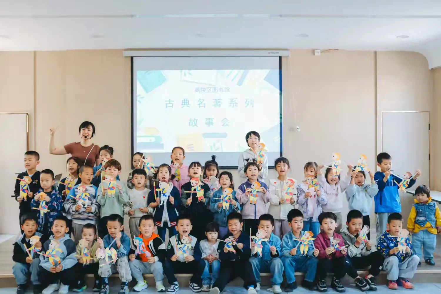 为推进全民阅读、促进优质文化资源直达基层、弘扬中华优秀传统文化,4月18日,按照区文化和旅游体育局安排部署,区图书馆联合鹿苑街道南新社区举办古典名著故事会——《西游记绘本·大闹天宫》,吸引了百余名小朋友及家长参与。活动通过故事分享与手工互动,为亲子家庭营造了温馨有趣的阅读氛围。