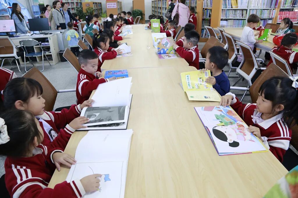 随后,在工作人员的有序引导下,亲子家庭走进少儿阅览室。工作人员紧扣活动主题,精心挑选并推荐了《我爱你,中国》《中国的节日》等一批优质绘本与图书。拿到心仪的书籍后,家长们轻轻坐在孩子身边,翻开书页用低沉舒缓的声音讲述书中故事。孩子们不时指着书中的插图,与家长分享自己的发现——“妈妈你看,这是天安门!”“爸爸,五星红旗好漂亮!”,稚嫩的话语与家长的轻声回应交织在一起,阅览室里满是亲子共读的温馨画面。