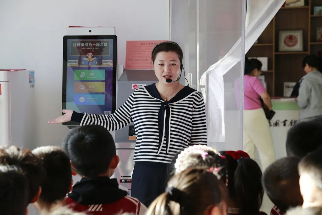 活动伊始,图书馆馆员郭洁用童趣十足的语言向在场的亲子家庭生动介绍了图书自助借还一体机、图书杀菌机的功能与使用方法。孩子们瞬间被这些“神奇的机器”吸引,一双双亮晶晶的眼睛紧紧盯着设备,全神贯注地倾听操作要点,遇到不懂的地方还会高高举起小手提问,稚嫩的问题在馆员耐心解答下一一化解。在轻松愉悦的氛围中,孩子们不仅解锁了图书馆“智能工具”的小知识,更对图书馆的功能布局与阅读环境有了初步认知。