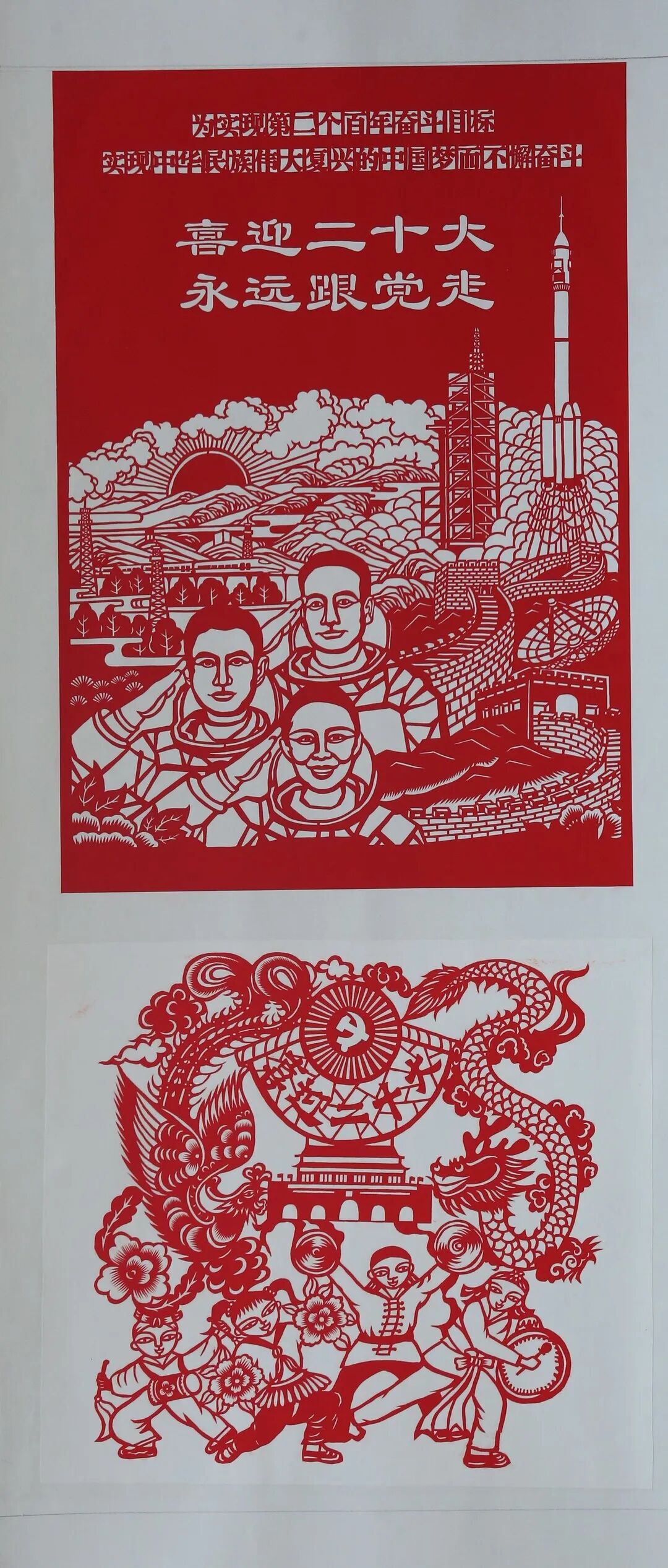 活动开展以来,我们先后共收到全国28个省、市、自治区的202位剪纸艺术家送来的239幅作品,这些作品充分显示了中华传统剪纸艺术的独特魅力,彰显了剪纸艺术家们爱党、爱国、爱家的伟大情怀。通过对十八大以来文化工作新作为新气象新高度的“窗口”展示,为党的二十大胜利召开营造浓厚文化氛围,坚定中国特色社会主义理论自信、道路自信、制度自信、文化自信,弘扬主旋律,展示新风貌。