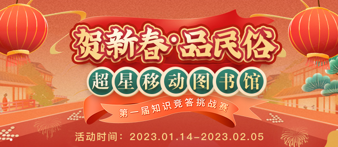 扫 码 参 加 扫码进入“超星读书”小程序,点击首页活动图,即可参与。 提前恭祝大家新春快乐,兔年大吉! 1月14日,我们不见不散(︶.̮︶✽)