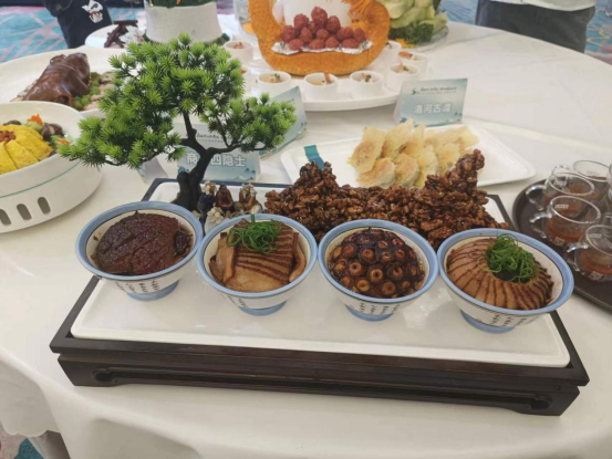 秦末汉初,天下战乱,有周、吴、崔、唐四位贤士,在丹凤商镇的是商山隐居,以避秦乱,商洛人尊其为"商山四皓"。四人采商芝而食,写下了著名的巜釆芝歌》:“莫莫高山,深谷逶迤,烨烨紫芝,可以疗饥″。使商芝以野山野味驰名省内外,此菜精选一年生商山黑猪,取其五花肉,入汤锅煮至六成熟捞出,趁热涂抹土蜂蜜。锅入油烧至八成热,将肉块皮朝下放入,炸成金黄色,捞入肉汤泡软,待凉后经改刀,整齐的码入蒸碗中,配以泡发过的商芝,黄花菜,油炸豆腐条,大枣,黄米等等。上笼用旺火蒸1个多小时,待其入味,滗去原汁,将用扣入碗中。此菜色泽红润,质地软糯,肥而不腻,入口可化,有甜有咸,荤素搭配,成形四样,样样不同,以寓意四位贤人。推荐店:冠山田老三农家乐