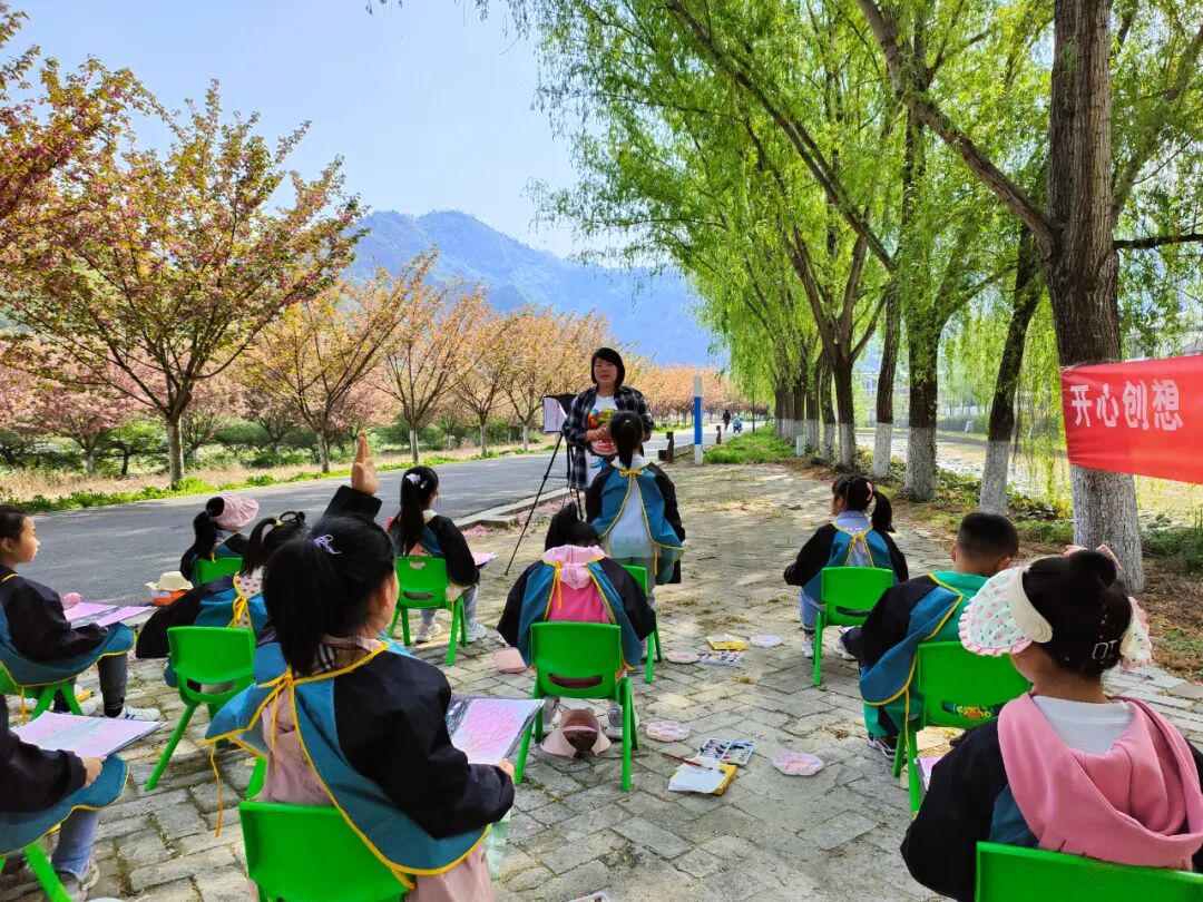 4月16日上午9点整,孩子们来到我们此次户外写生的目的地留坝县花海,阳光正好,孩子们很快融入到大自然之中,美术老师带孩子们欣赏樱花树,掌握画面的构图,学树枝的穿插关系,路面的近大远小等。