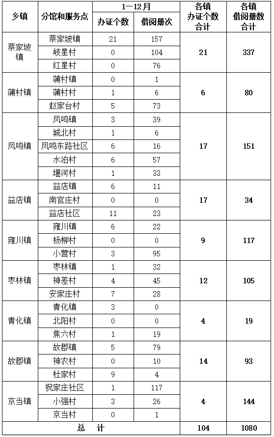 岐山县图书馆各镇分馆及服务点2023年服务情况统计表